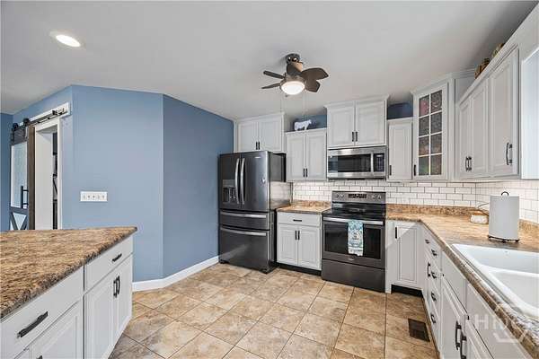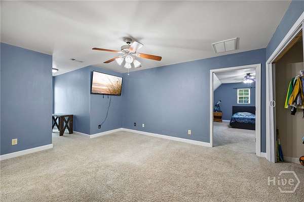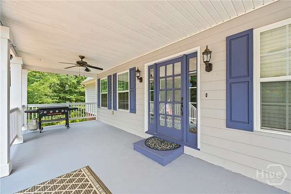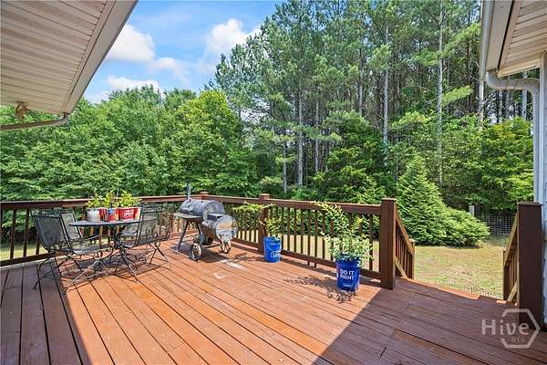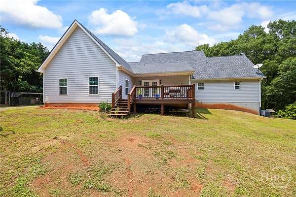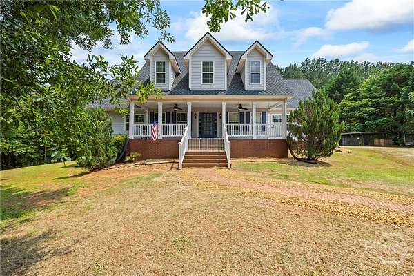 Custom Cape Cod on nearly 4 acres, surrounded by mature hardwoods. From the spacious front porch to the newly painted back deck this home offers a quiet, private setting. The kitchen features generous counter space, walk-in pantry, breakfast nook, & connects to flex space & living room -perfect for daily living & entertaining. The back deck offers a great spot to relax in nature. Owner's suite includes 2 walk-in closets, jetted tub, walk-in shower, & sitting area. Upstairs, you'll find 2 additional bedrooms-each with a bonus room that could serve as an office or playroom, & a large shared bath with separate vanities. Full unfinished basement offers potential for storage, a workshop, or future living space. Outdoors is a blend of open yard & woods, with wildlife often passing through. Enjoy blueberry bushes, blackberries, peach & pecan trees, & a custom 12x12 clubhouse/treehouse! Fully fenced, w/ gated access, offering a rare mix of space, privacy, and character-just waiting for you!