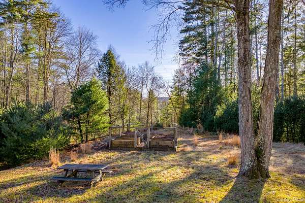 Welcome to 136 Yulan Barryville Road-a 10-acre sanctuary tucked in the scenic hamlet of Barryville, where natural beauty, small-town charm, and Catskill serenity meet. Whether you're looking for a peaceful primary residence, a weekend escape, or an income-generating short-term rental, this updated cabin checks every box. As you approach, a long private driveway leads you across a babbling creek that winds through the front of the property, creating a serene and storybook entrance. Surrounded by mature trees and pockets of open, sun-drenched clearings, the setting is straight out of a nature lover's dream. A fenced-in raised bed garden sits to the right-perfect for farm-to-table living-while a whimsical bowed tree path to the left invites you down to the creek. Around back, the wraparound deck offers seclusion and panoramic views of the wooded property, making it ideal for morning coffee, evening wine, or wildlife watching. The exterior features include freshly painted wood siding, a tin roof, and a detached shed for tools or gear. Whether you're a hiker, gardener, hunter, or homesteader, this property is a private haven to unplug and unwind. Step inside and you're greeted by an inviting foyer with built-in open shelving, seamlessly connected to the updated open-concept living, kitchen, and dining areas. Large windows bring the outside in, while radiant heated floors ensure cozy comfort throughout the main living space. The living room features a striking stone-faced wood-burning fireplace, accented by a knotty pine ceiling with skylights for added warmth and glow. The kitchen is a showstopper, boasting industrial-style open shelving, butcher block countertops, and oversized windows framing the view of the backyard and garden. A large island anchors the space, offering plenty of prep space and seating, while the adjacent dining area makes entertaining effortless. Two bedrooms line the hallway-each with their own unique touches. The first bedroom features sliding glass doors leading directly to the back deck, while the second includes a cozy bay window with a built-in seating nook, perfect for reading or relaxing. At the end of the hall, the luxurious bathroom awaits, complete with double sinks, a built in a walk-in shower, oversized soaking tub, and tranquil tile surround-your very own spa retreat in the woods. Additional interior features include recessed lighting throughout, solid hardwood and mixed wood elements, and thoughtful design that blends modern updates with timeless cabin charm. And let's not forget the Barryville lifestyle. Just a few minutes down the road, you'll find the beloved Barryville Farmers Market, renowned for its locally grown produce and community atmosphere. Grab brunch or dinner at one of the award-winning restaurants, stroll through boutique shops, paddle the Delaware River, or explore the outdoors with nearby hiking and biking trails. Commuters will enjoy convenient access to Route 97 and other major thoroughfares. 136 Yulan Barryville Road isn't just a home-it's a lifestyle. A rare opportunity to own a slice of paradise where the Hudson Valley meets the Catskills, complete with charm, modern comforts, and privacy in abundance.
