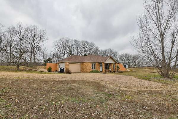 Step into this beautifully remodeled three-bedroom, two-bathroom earth-berm home set on almost 3.5 serene acres -- offering energy efficiency, privacy, and peaceful country living. Updated throughout, the home features new flooring, fresh paint, and fully renovated kitchen and bathrooms for a modern, move-in-ready feel.The gorgeous eat-in kitchen stands out with sleek granite countertops, a peninsula for extra seating space, and stylish finishes -- perfect for cooking, gathering, and everyday living. The spacious primary bedroom includes a remodeled private bathroom, walk-in closet, and elegant tray ceiling, creating a comfortable retreat of your own.Outside, you'll love the blend of relaxation and functionality, including an attached one-car garage, covered front patio, storage shed, pergola, firepit area, and a Coleman 24' above-ground pool for summer fun. Major improvements bring peace of mind as well -- the previous owner replaced the roof in 2024, along with a new well pump.Whether you're looking for a quiet homestead, weekend escape, or acreage with room to spread out, this thoughtfully updated property offers the best of country charm and modern comfort -- all in one unique earth-berm home.