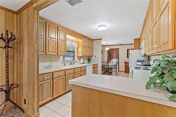 Tucked away in the heard of the property, the concrete block home with coquina stucco overlay offers both privacy and durability. With a spacious 3-bedroom, 2-bathroom layout spanning 1,920 sq ft, this split bedroom plan provides a comfortable and functional living space: