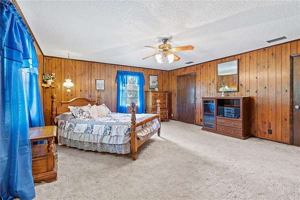 The back of the property transitions into a more wooded landscape, interspersed with open clearings and low-lying areas that hold water seasonally - ideal for wildlife, small ponds, or natural habitat preservation. It's a perfect setting for trail rides, nature walks, or simply enjoying the peace and quiet of country life.
