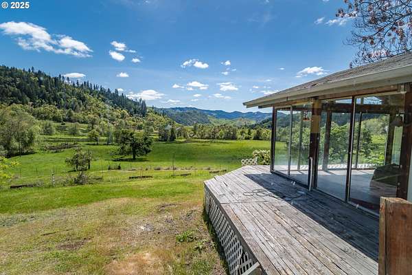 From the minute you turn onto the long, private driveway, the view is breathtaking. In addition to the 3 bedroom, plus office, 2 bathroom manufactured home, there is an unfinished room above the garage with a bathroom already installed. The home interior is in excellent condition, but the home could be classified as a fixer-upper due to the unfinished garage and condition of the outside deck. This home and beautiful property is best suited for a cash buyer. Property line starts just past the Sunshine Apartments and comes all the way up to the house. Property is cross-fenced. There is a huge shop that needs work with its own well, septic and electric. This is a unique find with all of this property, yet only 10 minutes to Roseburg!