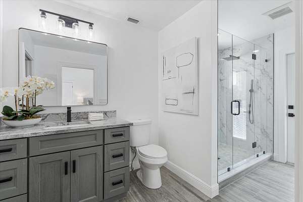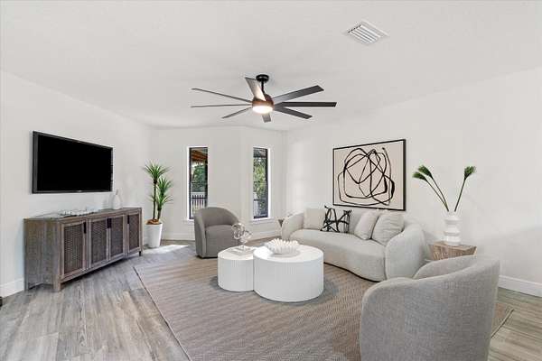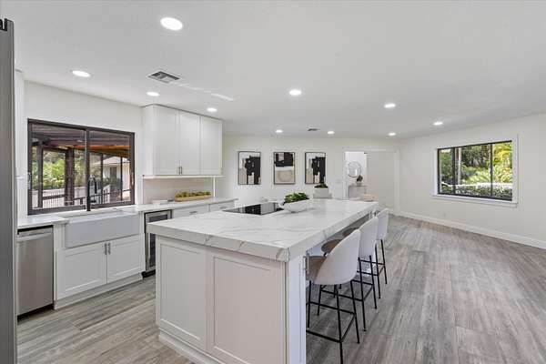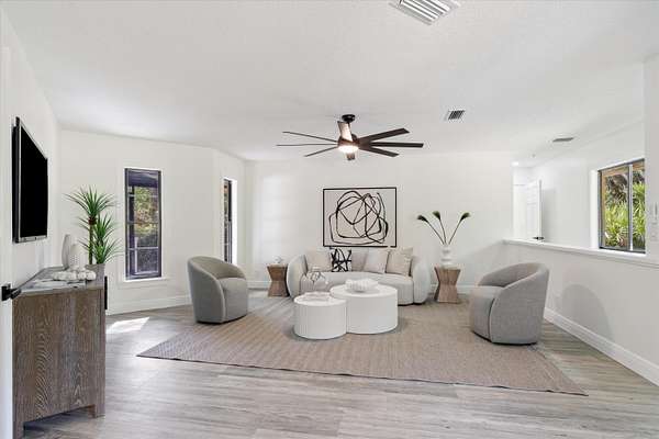 Welcome to the perfect blend of Space, Security, Style, and Opportunity. This fully remodeled 3-bedroom, 3.5-bath home sits on 2.5 beautifully landscaped acres, offering the rare combination of turnkey living and wide-open space to expand. Every inch of this home has been thoughtfully updated, featuring modern finishes, a brand-new roof, two new air conditioning systems, and a spacious layout designed for both comfort and entertaining. Two bedrooms offer their own private bath, creating an ideal setup for guests, family, or multi-generational living. Step outside to a stunning screened-in porch overlooking a meticulously maintained yard -- the perfect place to unwind or host gatherings year-round. The property is fully secured with a newer black iron fence and TWO gated entrances, offering