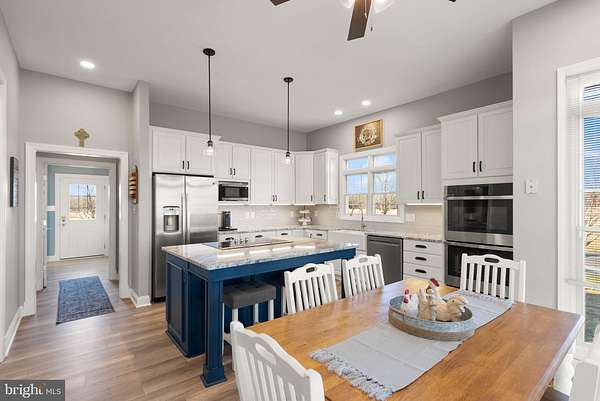 Absolutely gorgeous 6-bedroom, 3.5-bathroom home situated on 10 acres, offering exceptional space, versatility, and extensive improvements throughout. The main home features hardwood floors in the living room, dining room, entry, and primary bedroom, along with a fully renovated kitchen (2022) with all new appliances, granite countertops, and expanded island seating. Additional upgrades include a renovated laundry room (2024) with new washer and dryer, cabinetry and sink, a powder room and pantry renovation (2023), gas fireplace conversion with upgraded tile, new LVP flooring in the kitchen, powder room and laundry room (2024), custom plantation shutters in the upstairs primary suite and bath, custom hurricane door shades, a custom primary closet system, and all new light fixtures and ceiling fans throughout. Major system updates provide peace of mind, including a new roof (2024), new water heater and water softener (2023), heat pump (2022), second-floor HVAC unit (2022), and basement insulation replacement and air sealing (2023). The detached garage features a fully renovated, beautiful apartment (2023) complete with a full kitchen, full bathroom, and half bathroom-ideal for guests, in-laws, or rental income. Exterior improvements include stamped concrete walkways, new basement walkout doors, new back and garage service doors, new garage door openers, updated outdoor lighting, storm doors, and added shelving in both the garage and basement, making this move-in-ready home a rare opportunity with luxury upgrades! This GEM won't last long and is a MUST see!!!