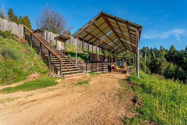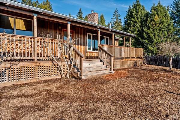 This offering represents a true real-asset investment: a capital preserving forest with optional income, documented downside protection, and long-term inflation-hedging characteristics. The property consists of 116 acres of productive timberland situated on Site Class III redwood ground and managed as an uneven-aged working forest rather than liquidation timber, allowing for income generation while preserving long-term land value. A comprehensive timber inventory and volume model were completed using FORSEE forestry software, providing a transparent, data-driven assessment of current and projected timber value. Total standing inventory is estimated at approximately 2.48 million board feet. A modeled 40% selection harvest projects harvest volumes of approximately 741,000 board feet of redwood and 251,000 board feet of Douglas-fir, yielding an estimated net timber value of approximately $764,672 after Timber Harvest Plan (THP) costs and yield tax. Complementing the land and timber value is an approximately 1,851 sq ft, 3 bed, 2 bath residence with a beautiful loft overlooking the open living room. The home features an open floor plan with vaulted ceilings and was built by Dick Coolidge, who also built the Comptche Church, using locally sourced wood including resawn redwood exterior siding, a new resawn redwood deck, large exposed beams, and redwood accents throughout. A custom live-edge madrone slab stairway serves as a striking rustic centerpiece. The living area includes a large brick guitar-shaped fireplace with a wood stove insert that efficiently heats the entire home, along with a brick pizza oven accessed from inside the living room for entertaining and creative cooking. The remodeled kitchen is highlighted by a one-of-a-kind slab of Brazilian granite and cherry-toned hardwood cabinetry. Interior doors are primarily solid-core mahogany with select clear-grain Douglas fir doors. The property offers ample flat, usable ground with generous space for parking, storage, and future utility improvements. A new composition roof was installed in November 2022. This asset provides true optionality: harvest now for income, defer harvest to compound biological growth, or hold as a hedge against inflation while preserving the integrity of the underlying real estate for future generations. Well suited for 1031 exchange buyers, hard-asset allocators, and legacy-oriented land investors.