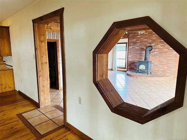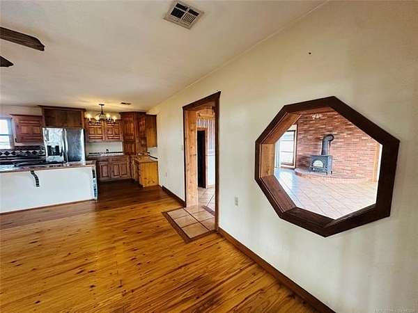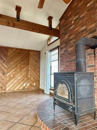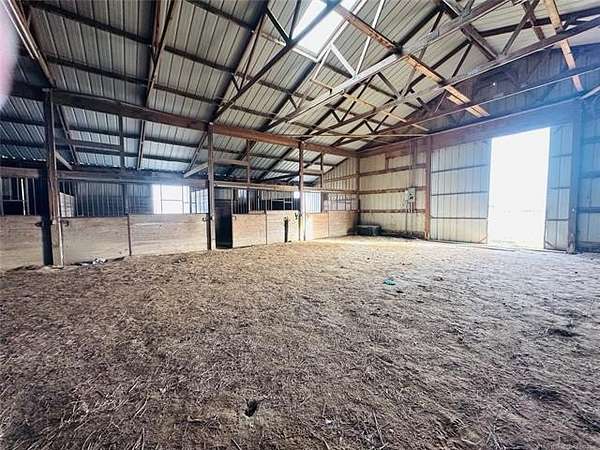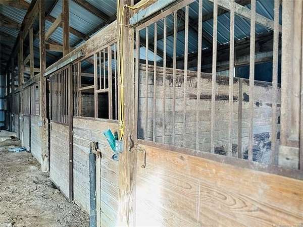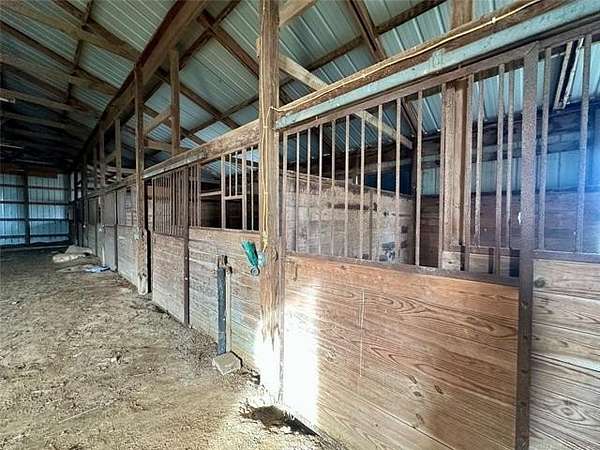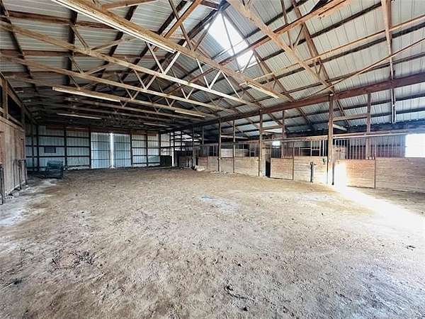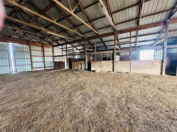 Located just 1/8 mile off a blacktop road, this 15-acre horse property offers space, functionality, and incredible opportunity - complete with a small pond and room to create your ideal setup. While the house and property could use a little TLC, the foundation is here for something truly special. The horse barn is thoughtfully designed with 6 stalls with runs and a large warm-up area. Inside, you'll find a feed room, supply room, and a secure tack room with a steel door. Two frost-free water hydrants are conveniently located in the barn, along with a hay loft for storage. A separate room with its own locked entrance provides flexible space for an office, trainer's room, or additional storage. Outside, the arena is wired for lights, and the round pen is ready for a refresh. There's also a two-horse lean-to for additional shelter. The implement shed includes four stalls and connects to a large storage building with a concrete floor and barn doors - offering plenty of space for equipment, trailers, and ranch essentials. The 2-bedroom, 1.5-bath home is comfortable and full of character, just waiting for your personal touch. The spacious kitchen features knotty pine cabinets and a large island with a built-in range, opening to the living room for an easy, functional layout. Just off the main living space, step down into a huge bonus room with beautiful beamed ceilings and a cozy wood-burning stove. A half bath is conveniently located off this area. On the opposite side of the home, a hallway leads to two bedrooms and a full bath with double sinks, a separate soaking tub, and a shower. A dedicated laundry room offers additional convenience with easy access to the HVAC equipment. With solid bones, ample acreage, and well-planned equestrian amenities, this property is ready for its next chapter. Bring your vision, roll up your sleeves, and transform this horse lover's dream into your own slice of country paradise.