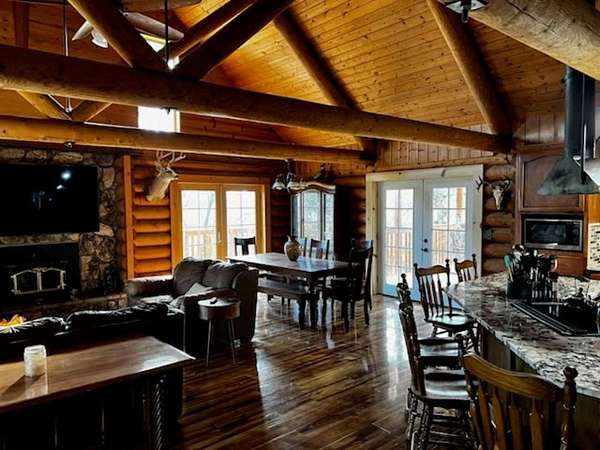 Discover peaceful country living. This two -level Custom log home sits on 5+ usable acres with beautiful views, mature trees, and plenty of privacy. The open layout features a open beam living room functional kitchen with granite counter tops and newer appliances. Recent floor upgrades to most of the home. 4 bedrooms / 4 baths, including a recently updated bathroom. Enjoy outdoor living on the spacious deck, perfect for relaxing or entertaining. A pull-through paved driveway and RV parking provide convenience, while the 2018 roof and well water add practical value. but also have public water through Jones Valley CSA #6 Just minutes from Shasta Lake or Bella Vista. Approximately to minutes to Redding. Dry Creek is on property (seasonal) Home also has a small barn as well as a storage container (if desired) Information per seller Buyers to verify all information. Pertaining home including square footage