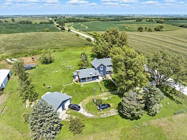 You will be delighted with the amazing 360 views of Southwest Iowa farmland from your little slice of heaven! 2 apple trees and 5 red cedar trees topped off with so much new: Hardie Board siding, roof & gutters in 2025. Steel utility building/barn 24x48 set up for horses, 12x22 lean-to, and 20x20 shed all new in 2020. HVAC is 10 years old, brand new well 3-4 years ago, 2 outside hydrants, new kitchen 3 years ago has beautiful custom hickory cabinets, new LVT flooring & SS appliances. One new bath in 2024. brand new living room carpet. New Champion windows 10 years ago. Water softener, R/O system, main floor laundry and a mud room. Add a generous amount of storage to this 2012 sq ft of living space and this could be your new Home Sweet Home!