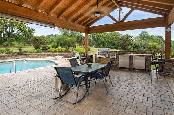 Find your private oasis on 10.33 acres in Goodlettsville, TN. The charming home invites you into the comfortable living room with soaring ceilings, skylights, and an enormous brick fireplace. The chef's kitchen provides a functional, and beautiful, space to cook and entertain with stainless steel appliances. The master suite has enormous space to make the room your sanctuary, including high wood-paneled ceilings and a relaxing en-suite bathroom. Upstairs you will find cozy bedrooms with comfortable bathrooms that are perfect for guests. Fall in love with the dream backyard! A brick paved patio surrounds the pool, and the poolside pavilion features an outdoor kitchen for grilling! The serenity of the surrounding countryside is ideal for an escape from the city. Home, Sweet, Home! Additional 20 acres available.