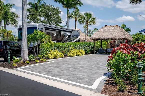 Lot 70 - As you drive in Naples Motorcoach Resort, the first thing you notice is the beautiful landscaping and fountains as you head toward the gates. Once opened, the gates lead you down beautifully manicured and paved roads to your slice of heaven. As you back into your property, you marvel at the lush landscaping as well as the sophisticated styling with a mix of beautiful gray and white pavers and top of the line tiles. Thought was given to having multiple conversation areas, the choice is yours!. The tiki is amazing with lighting on dimmers to set the exact mood you are looking for. Your property backs to a privacy wall which means you only have two neighbors, one on each side. But Wait!!! on the one side is an equally tastefully done property with the same amenities with a walkway between????? This property was designed by the same owners and is also available! An opportunity for you to have one of your friends r loved ones own the property next to you. Or .... buy both and keep one for investment and rent when you don't have a relative staying on it, or keep it as is for the extra space and entertaining. The opportunities are endless!