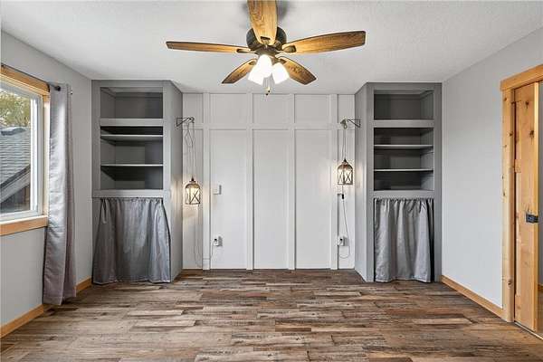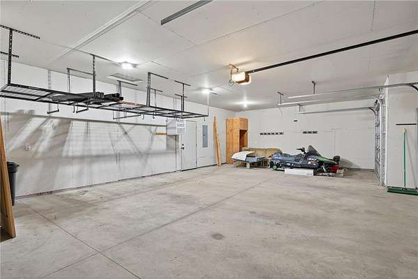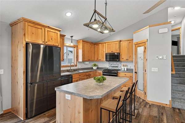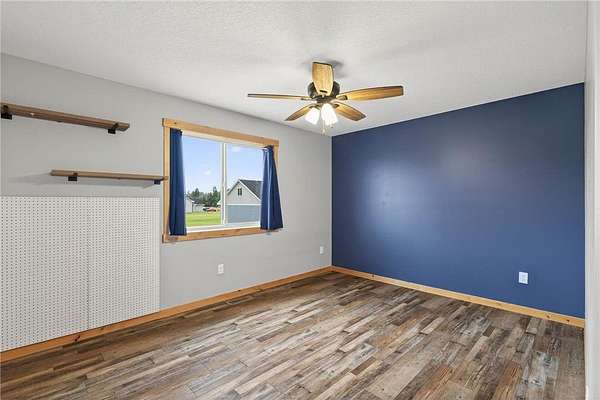 Knotty alder cabinetry, stainless steel appliances, and a corner pantry highlight the kitchen area. A center island provides extra counter space, while decorative backsplash and hanging fixtures complete the functional space. Upstairs bedrooms feature ceiling fans and lots of natural light. The primary bedroom offers built-in cabinets for storage, a private primary bathroom, and double closets. A convenient main floor laundry/mud room with a half bath keeps things neat and organized. Partially finished with framed rooms, the lower level offers the opportunity to build equity and customize to your needs. The 4-car insulated garage includes overhead storage racks, pre-wiring for a garage heater, and RV power x2. The 16'x24' Old Hickory Shed is great for storing seasonal items. Convenient to US Hwy 169, minutes away from the Sherburne National Wildlife Refuge and the Sand Dunes State Forest- come, relax, and enjoy country living at its finest!