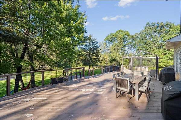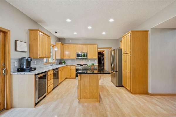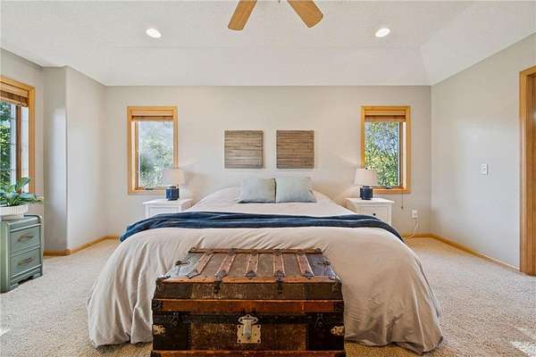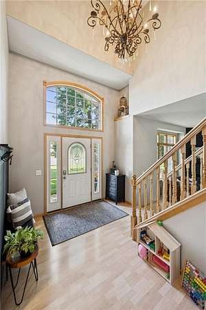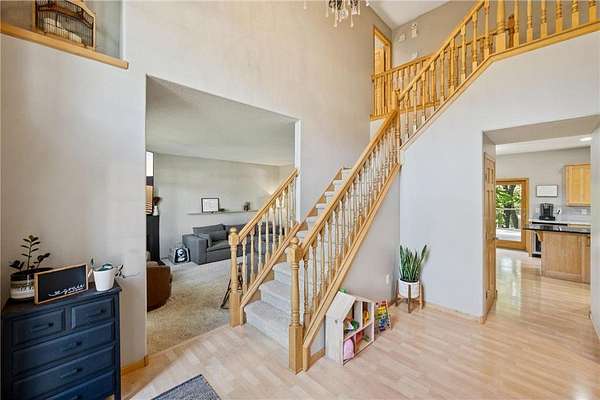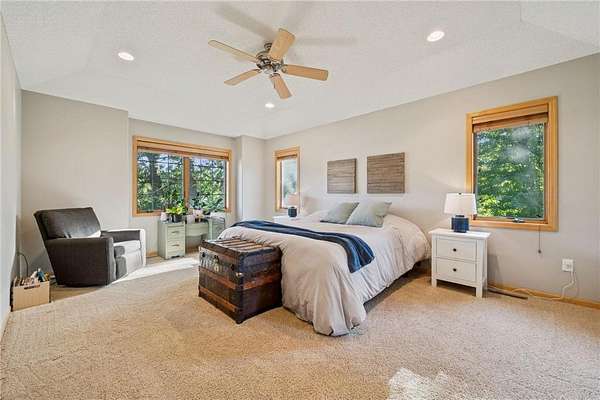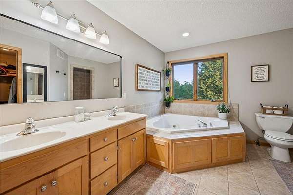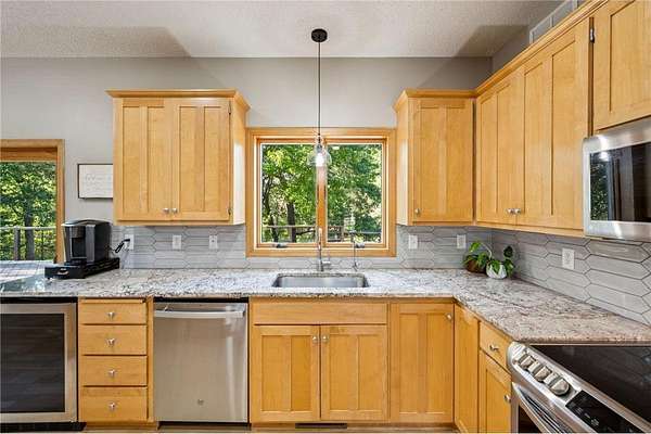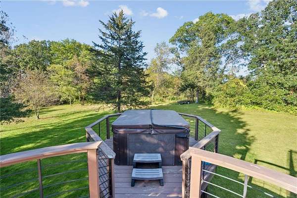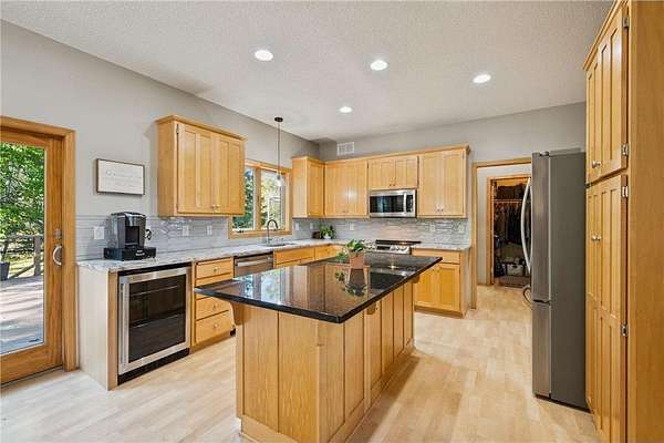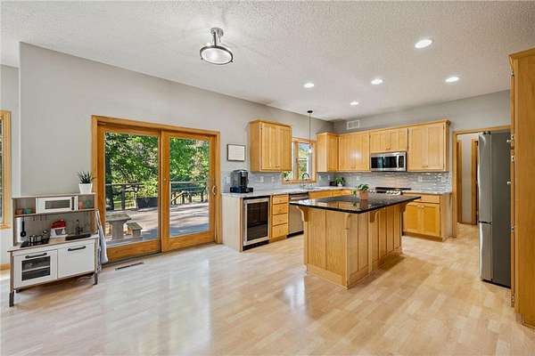 Experience refined living on 1.67 acres at the end of a serene cul-de-sac with captivating views of Clitty Lake. An enormous deck spans the back of the home, complete with a hot tub and sweeping views of the private backyard, creating an outdoor oasis perfect for entertaining or unwinding in style. A trail right out the front door leads directly to the city park, providing private access to outdoor recreation. This impressive two-story blends timeless craftsmanship with modern enhancements, offering both elegance and comfort. The gourmet kitchen is a true centerpiece, complete with granite countertops, a tiled backsplash, stainless steel appliances, and a built-in wine and beverage fridge. The kitchen flows into a spacious dining room, perfect for hosting memorable gatherings. The main level also features a cozy living room with an updated fireplace and a sophisticated office framed by French doors. Upstairs, the primary suite provides a private retreat with a separate tub and walk-in shower, accompanied by two additional bedrooms and a main bathroom with a double vanity. The cozy basement offers additional living space with its own fireplace, bedroom, and full bathroom. Recent appliance updates elevate this home even further, including a new washer (2025), fridge (2024), and dishwasher (2023). The garage has been finished with drywall, insulation, added outlets, insulated doors, and a heater (2023). A new garden shed was also added in 2023. This is a rare property that combines elegance, privacy, modern updates, and unbeatable access to outdoor living in a truly exceptional setting!