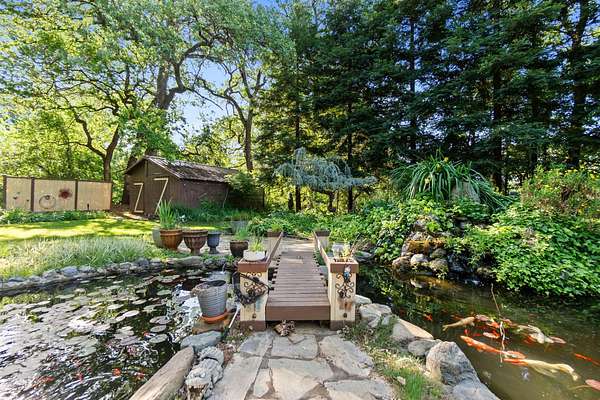 This charming single-story home offers the perfect blend of comfort, functionality, and outdoor living. The property features a beautifully landscaped yard highlighted by a tranquil KOI POND with a picturesque bridge, an ideal space to relax and unwind. Property includes a spacious SHOP, GREENHOUSE, and dedicated garden areas. Entertain with ease around the FIRE PIT or enjoy peaceful evenings surrounded by mature trees and lush greenery that provide privacy and a natural retreat-like atmosphere. Inside, the home is warm and inviting, with abundant natural light and a seamless connection to the outdoors. Whether you're hosting gatherings or simply enjoying the quiet beauty of the property, this home offers a unique lifestyle opportunity.