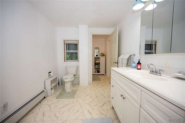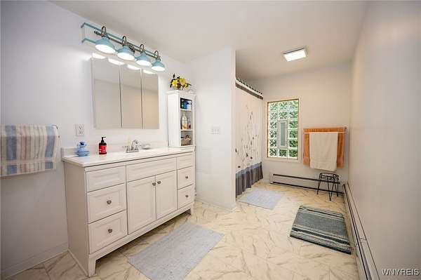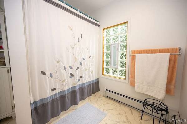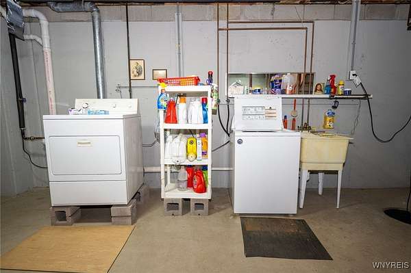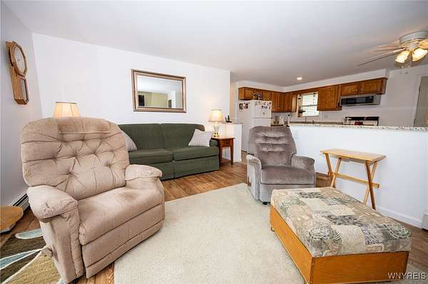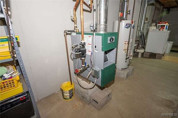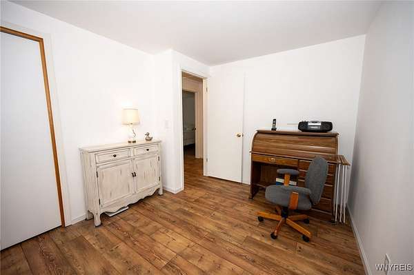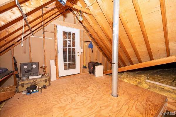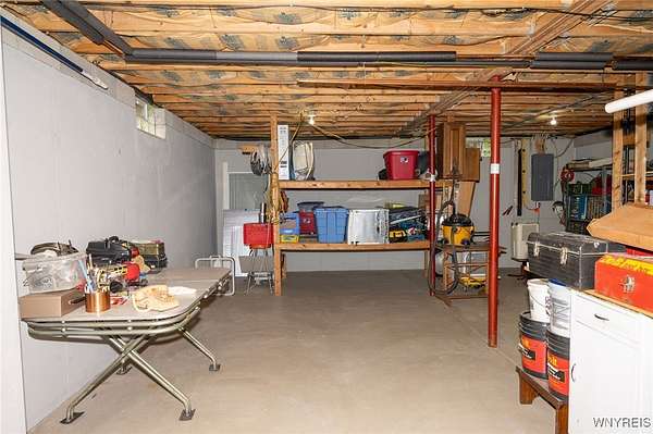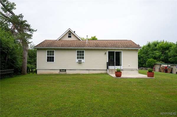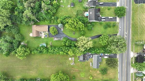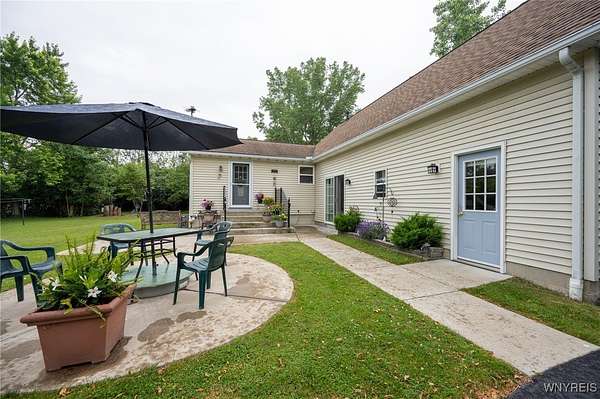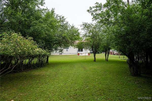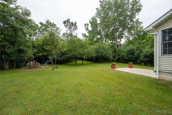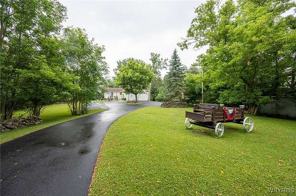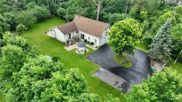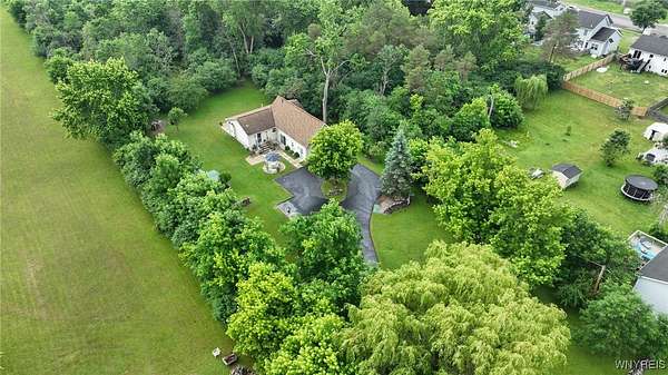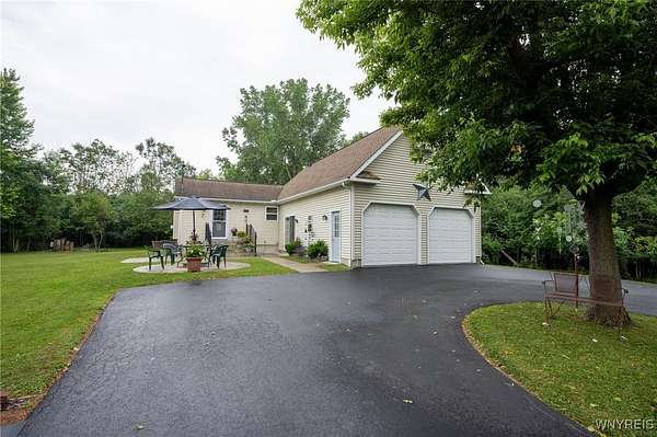 Nestled on almost two acres of serene landscape, this custom ranch built in 1994 has been meticulously maintained and thoughtfully updated. The home is set back from the road and surrounded by beautiful and private yard. The driveway and surrounding landscape is absolutely ideal for families with children or anyone who enjoys outdoor space. The attached garage is well equipped with 11' high ceilings and extra insulation. It is conveniently located minutes from of all your shopping needs and within the highly desirable Depew School District. The custom-poured basement boasts 9' ceilings and is spacious, clean and dry for anything you may need it for. The walk-up attic is partially finished and can be accessed by pull-down stairs, or you could install a stairway for extra bonus space above the attached two car insulated garage. The inside of the home has fresh white paint and neutral flooring and finishes so it's ready for any new owner's design ideas. The home's layout is perfect for entertaining with the kitchen flowing nicely into the living room. Relax in front of the living room's cozy fireplace while taking in a Bills game or walk out the sliding glass door to enjoy the back concrete patio and a sunset. The 3 bedroom and spacious full bathroom single level living is convenient for families, young professionals and retirees alike. The home also boasts an extensive concrete front yard patio with circular dining area making outdoor entertainment a breeze. This home can be easily added on to by utilizing the partially finished attic or by expanding outwards. A 1- year home warranty is included with any contract at or above list price.