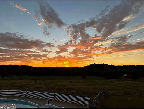 Welcome to your private North Georgia retreat, 50 breathtaking acres of pasture, peaceful woods, and a flowing creek, all anchored by a beautifully maintained 3 bedroom, 4.5 bath home thoughtfully positioned on one corner of the property to maximize both privacy and future potential. A long gravel drive welcomes you in, opening up to sweeping pasture views and stunning sunset backdrops. The home itself offers warm curb appeal with a covered front porch and spacious living areas designed for comfort and functionality. Inside, you'll find generous bedrooms, multiple full baths, and an easy flow that works perfectly for both everyday living and entertaining. The finished basement adds tremendous flexibility, featuring a second laundry area and a large flex room that can serve as additional living space, media room, home office, gym, or even a potential fourth bedroom. With multiple full baths throughout the home, the layout easily accommodates guests or extended family. Step outside to enjoy the in-ground pool and expansive concrete patio, creating the perfect setting for gatherings while overlooking your own private acreage. The surrounding fenced pasture is ideal for livestock, horses, or recreational use. One of the most valuable features of this property is the positioning of the home itself. Situated all the way to one corner of the 50 acres, the remaining land provides exceptional opportunity for a second home, guest house, or future family compound, making this an outstanding multi-generational property. Whether you envision parents building nearby, adult children creating their own space, or simply preserving room for future expansion, the layout supports it. The large barn with concrete floors offers ample storage for equipment, hay, vehicles, or workshop space, perfectly suited for farming, equestrian use, or hobby operations. A scenic creek winds through the property, adding natural beauty and character to an already impressive setting. Usable acreage, privacy, infrastructure, water feature, pool, barn, and expansion potential. Properties with this combination rarely come available.