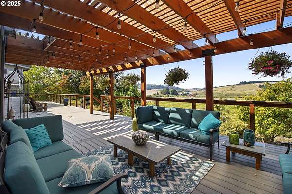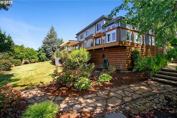 Turn key custom home, vineyard and boutique winery in Oregon's most prestigious AVA, the Dundee Hills. The home is incredibly well maintained and updated throughout, welcoming visitors with a two story entry leading to the vaulted living room with floor to ceiling windows. Large, gourmet kitchen with soapstone countertops, island, 2 ovens (one built-in, 1 in range) cherry cabinetry and window seat. Built in cabinetry plus 2 fireplaces (1 propane, 1 wood burning). Impressive primary suite with amazing views, large walk in closet, sprawling en-suite bath and detached water closet. Exercise room off of the garage offers flex space and was formerly used as an office. Relax on the expansive deck and take in the beautiful sunsets overlooking the vineyard. Large fenced garden with irrigated raised beds. Mature landscaping anchored by a picturesque stream/pond water feature. The 15 acre estate vineyard features Pinot Noir and Chardonnay, all of which are on grafted rootstock and vertical shoot position trellis system. Fully permitted winery with capacity for approximately 1000 cases annually. Acclaimed high scoring estate wines ensure the next owner this is a proven top-tier vineyard site. The property begins on the East side of Kinney Road and spans to Kuehne Road. offering potential to build a much larger winery and/or tasting room in the flat open acreage fronting Kuehne Rd. Meticulously maintained with numerous updates, too many to list here, ask broker for upgrades list. Don't Miss this opportunity to join the Oregon wine community.
