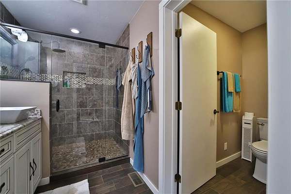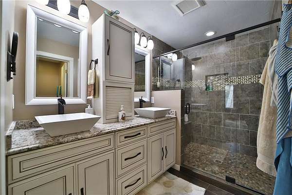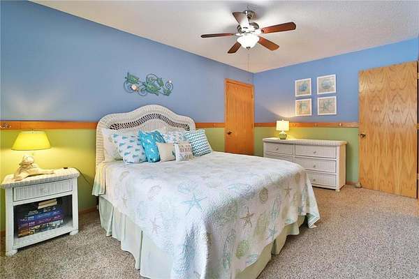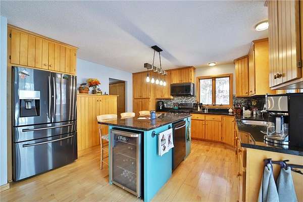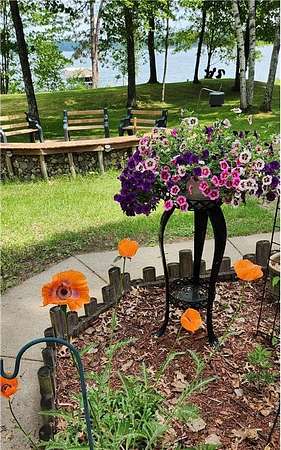 Premier lakeside property in the heart of the Lakes Area offering refined living with exceptional shoreline serenity, featuring 175 feet of level sand frontage ideal for swimming and recreation. This 3-bedroom, 3-bathroom home blends luxury and functionality with a kitchen showcasing granite countertops and maple cabinetry, perfect for everyday living and entertaining. The primary suite is a private retreat with a spa-like bath, tiled walls, and walk-in shower, while the four-season lakeside porch provides panoramic water views year-round. A walkout basement offers excellent potential for additional finished living space. Outdoors, enjoy a beautifully irrigated lawn, custom lakeside fire pit, detached three-car garage, plus an impressive 28x48 additional garage ideal for storage, hobbies, or lake toys. A 500 sq ft year-round guest cottage adds flexibility for guests, extended family, or rental income, making this exceptional property well-suited as a private retreat or a full-time lakeside residence.