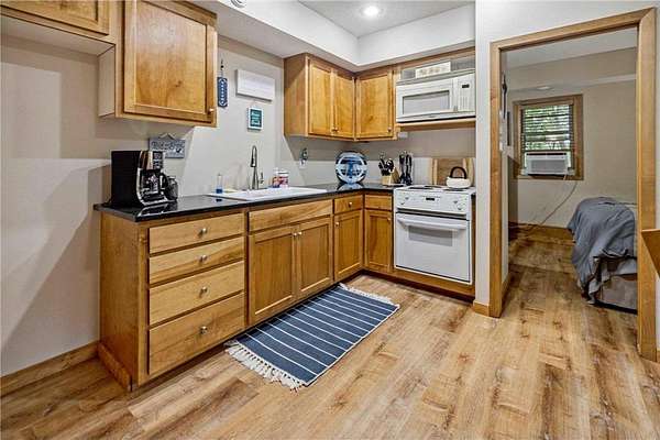 Outside, a beautifully irrigated lawn, outdoor firepit, and a 28x48 detached garage enhance the property's appeal, providing space for storage, hobbies, or lake toys. The 500 sq ft year-round apartment or in-law suite adds flexibility for guests, extended family, or rental opportunities.
