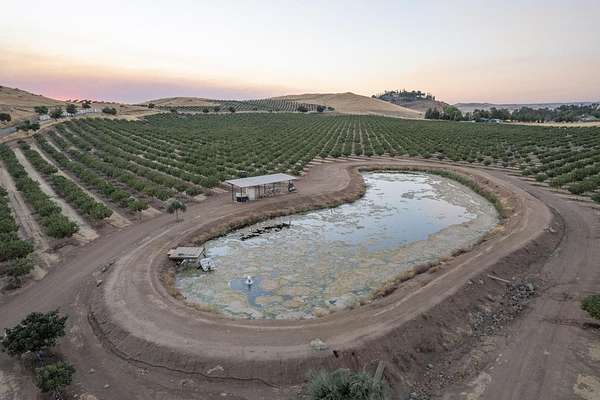 Whispering Hills Ranch offers an exclusive hilltop retreat w/breathtaking 360-degree views from elevations up to 600 feet. The property's developed Ag wells pump approximately 400 GPM into a nearly 2-million-gallon pond, supporting varied uses, including an 80-acre pistachio farming venture, all on drip irrigation. (farm management available) Pistachios are planted in 18 ft. rows w/16 ft. spacing. Located at 13638 E. Shepherd, east of Clovis, the property offers sweeping vistas west to the coastal mountains & over 100 miles east to the Sierra Nevada, with city lights from Clovis, Fresno, & Sanger. Spanning +/-161.59 acres across four parcels, the property allows for multiple, estate-sized homesites, each w/unobstructed views. A grand entrance features iron gates, ten-foot rock columns topped w/horse statues, & an asphalt road lined w/olive & oak trees, winding three-quarters of a mile to the scenic hilltop homesites. Existing accommodations include two 750 sq ft mobile homes & a guest Bunk House w/a wet bar, living room, & space for four. Nearby, a spa pavilion w/a jacuzzi, a vegetable garden, & a large chicken coop enhance the rural lifestyle. A 57.4 kW solar system powers the Ag wells & buildings sustainably, & the property also includes two 500-gallon fuel tanks for diesel & gasoline. Whispering Hills Ranch is a unique property, perfect for a private estate, family compound, farming, or equestrian pursuits.