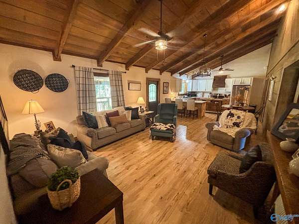 Est $1,463/moThis 2023 custom-built 4-bed, 2-bath home offers the perfect mix of comfort and adventure, blending modern design with rustic charm. Natural wood accents and an open floor plan create a warm, inviting space, with two bedrooms featuring cozy lofts. Outside, enjoy a covered front porch, spacious backyard, fire pit, trails, and a peaceful creek running through part of the 6.41-acre property.
