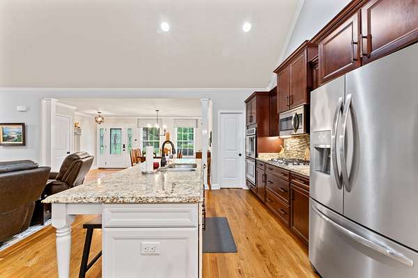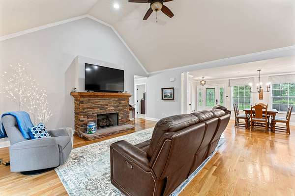 REDUCED AGAIN!!! Owner says "MAKE OFFER!!!" Welcome home! Beautiful ranch + bonus home on a 1.56-acre lot. The yard features several fruit trees, (peach, apple, and fig) and perennials. Fire pit, wood bench, and small wood bridges with steps leading into the woods. You will have your own private oasis in the backyard! Inside you have a very open floor plan with a gorgeous stone fireplace in living room, kitchen features a large island, gas stove, double ovens, counter-depth refrigerator, and a walk-in pantry! This home has an eat-in kitchen AND a dining room! Large bonus room as well! Home has ample storage and large closets! No HOA! Great location - 24 miles to Downtown Nashville! This is a must-see!! Customized primary walk-in closet and pantry! The mature trees behind the home are spectacular! Very deep lot. EZ commute to West Nashville/Clarksville. Only 20 minutes to North Nashville too!
