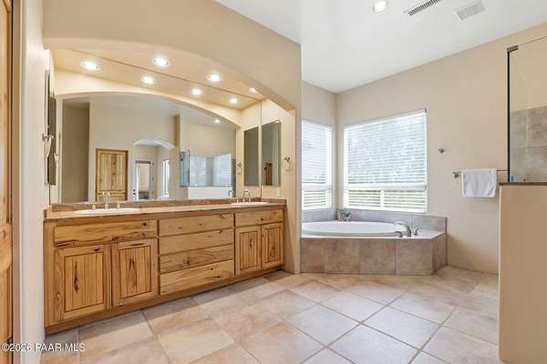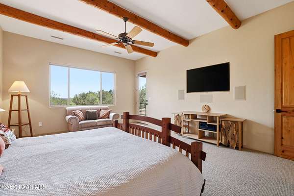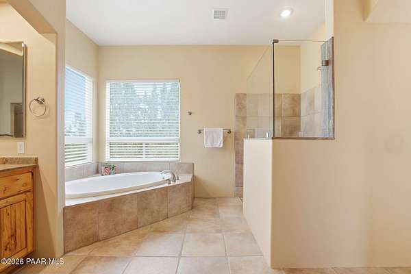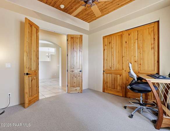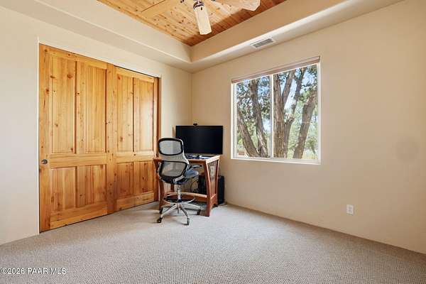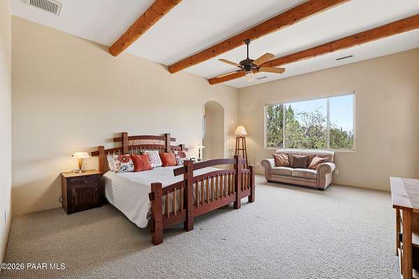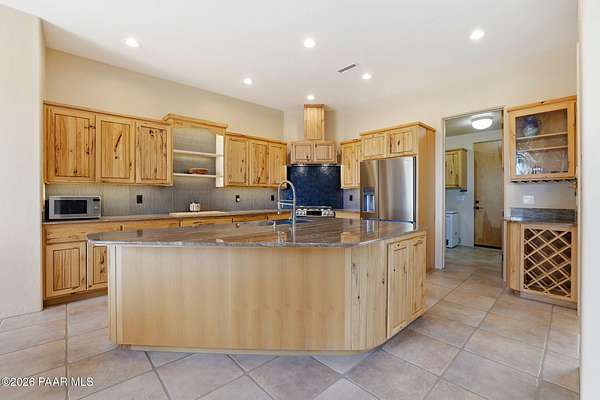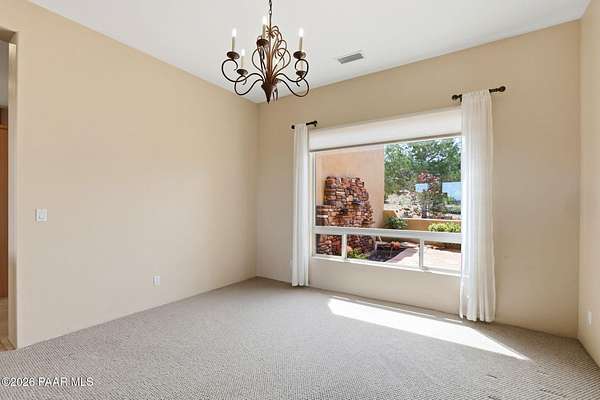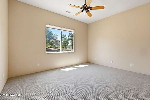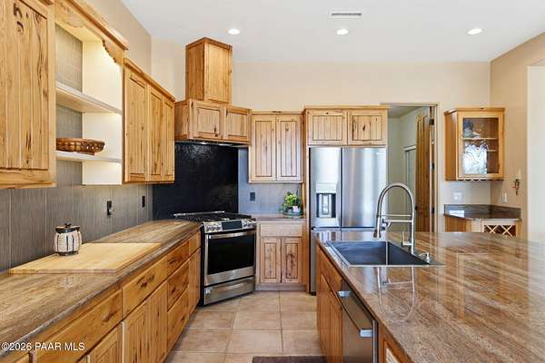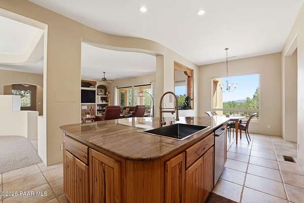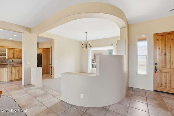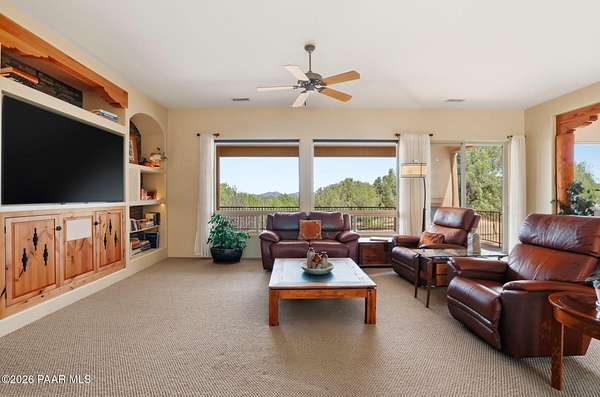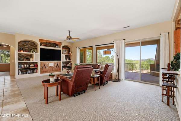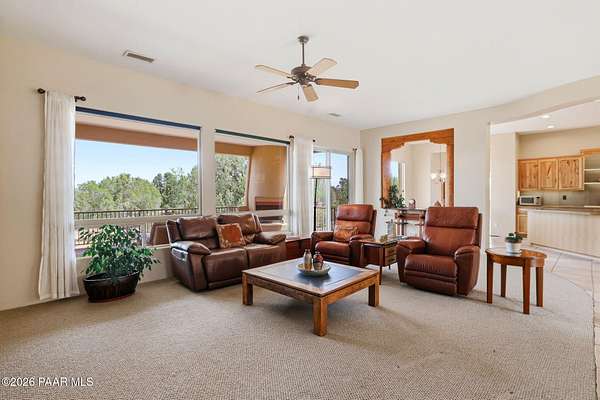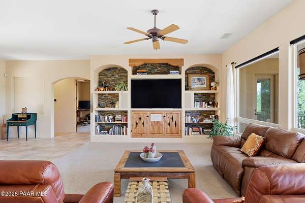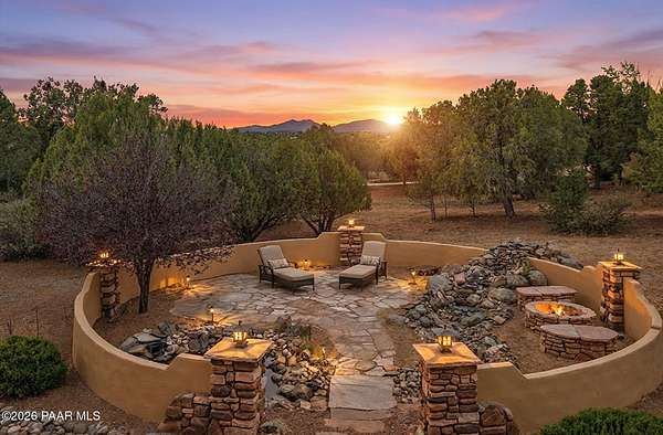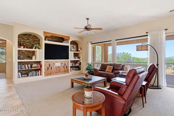 Welcome to a home that feels like a retreat in the heart of Inscription Canyon Ranch--where wide-open views, a peaceful pond feature, and a private courtyard set the tone for relaxed, elevated living. Step inside to an airy, sun-filled layout that flows effortlessly from the great room to the formal dining area, eat-in kitchen, and a spacious family/bonus room perfect for movie nights, hobbies, or a home office. Thoughtful 2024-25 upgrades bring modern comfort and efficiency, including a Bosch 20-seer heat pump, 20-year GAF roof coating, a powerful 15.795kW solar system with Tesla Powerwall backup, and a Rheem hybrid water heater--allowing the home to produce more energy than it uses. The kitchen and bar area shine with new stainless appliances, Zephyr remote exhaust hood, gas range, tile backsplash, and warm LED lighting. Designer touches include a custom living-room focal wall with integrated lighting and Polk speakers, wool Berber carpet, updated hardware, and a refreshed primary shower with frameless glass. Enjoy morning coffee on the back deck off the primary suite, or unwind while watching the sunset over the open landscape. With R-60 attic insulation, insulated garage doors, and plans for an RV garage, this home blends comfort, efficiency, and the relaxed Prescott lifestyle.