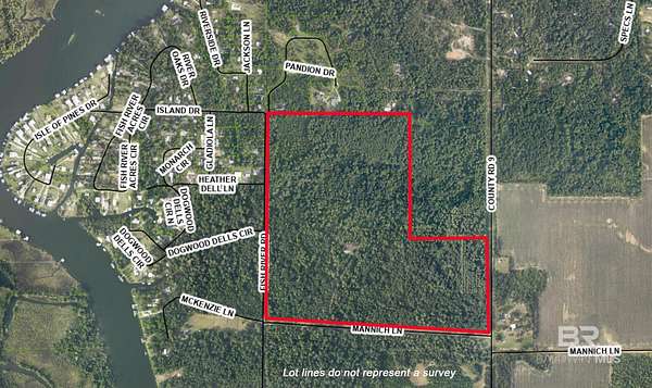 116 Acres | Prime Residential Land Near Fish River, AL. Located just west of Magnolia Springs, this 116-acre tract sits at the intersection of County Road 9, Fish River Road, and Mannich Lane--within a rapidly growing and highly popular corridor of South Baldwin County. Property Highlights, Zoning: SFR-1, Frontage: Paved Road access on three sides, Terrain: Natural wooded landscape with excellent privacy, Location: Minutes from Fairhope, Foley, Gulf Shores, and Mobile Bay. Restrictions: None - no deed restrictions. Potential Uses: 55+ gated community, low-density single-family, estate lots, mixed-use, or long-term investment. Parcels:05-55-04-37-0-000-002.000 (PIN 63260)05-55-04-19-0-000-002.000 (PIN 7686)Entrance is locked. Agent must be present for all showing. Buyer to verify all information during due diligence.