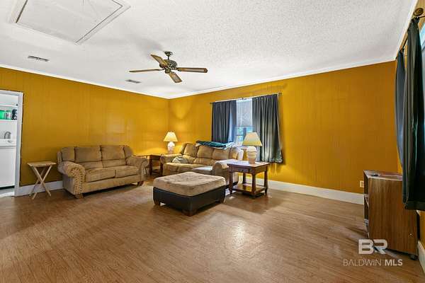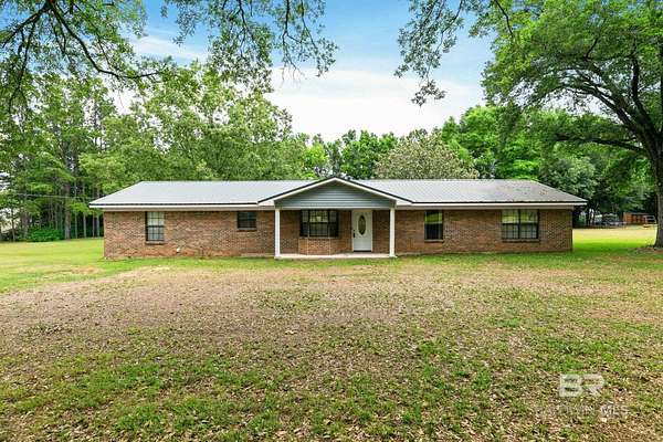 Welcome to Riverside Farms Estates—where space, freedom, and convenience come together on nearly 2 acres (1.91 acres) in the county with NO HOA. This all-brick ranch, built in 1979 and set on a slab foundation, offers solid construction and room to make it your own. Major updates include a metal roof (8 years old), HVAC (2015), and a brand-new water heater—giving peace of mind on the big-ticket items. Inside, the home features a functional layout with two separate living areas and a cozy wood-burning fireplace, along with stainless steel appliances including refrigerator, electric range, and a brand-new dishwasher, plus washer and dryer that convey—making it move-in ready or a great investment opportunity. Outside, the possibilities are wide open. You’ll have plenty of room to park equipment, bring your toys, add structures, or simply enjoy the extra space and privacy. Located in a peaceful, country setting with easy access to everything Baldwin County has to offer, this property gives you the space you’ve been looking for without sacrificing convenience. Buyer to verify all information during due diligence.