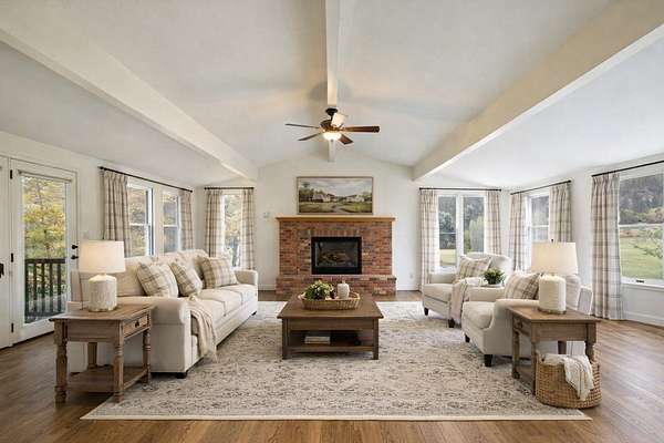 - Fireplace, Main Level Primary, Vaulted Ceilings, Walk In Closets