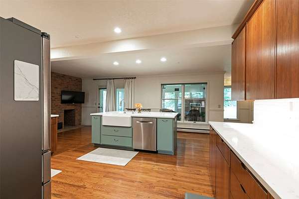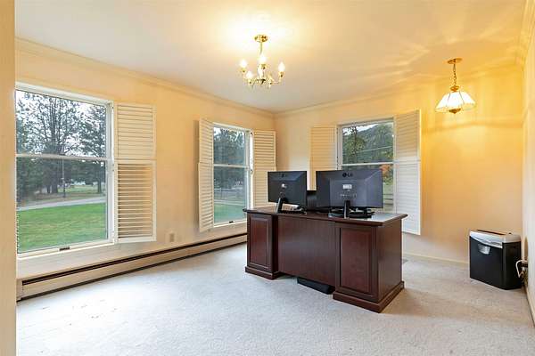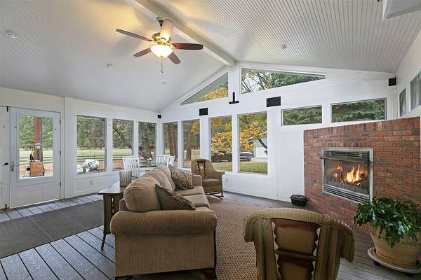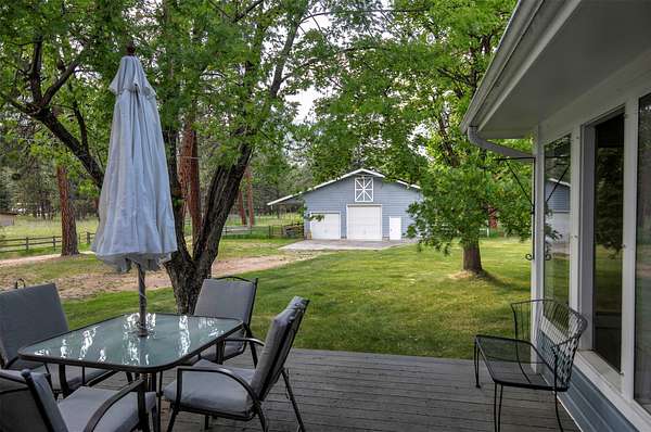 Just 15 minutes from downtown Missoula, this 6,420-square-foot Colonial home sits on 23.88 acres of fenced land, offering both space and versatility for agricultural use. The home is filled with timeless detail and quality craftsmanship, featuring six bedrooms and three and a half bathrooms. Four out of the six bedrooms have spacious closets. Inside, the remodeled kitchen includes hardwood floors, updated finishes, and plenty of room for cooking and gathering. There are two gas fireplaces and two wood-burning fireplaces spread throughout the home, adding warmth and comfort in every season. A screened-in porch with glass panels to swap in for winter creates a cozy space to enjoy the outdoors year-round. Every window offers a view, from rolling pasture to mountain backdrop, giving the home a sense of openness and calm. Attached is a 2-car garage with ample space, automatic garage doors and access to the home through the basement. Outside, the property includes a 1780+ square foot large barn with two tack rooms and pull-through doors and a round pen which is ideal for horses or livestock. The land is fully fenced and ready for agricultural use and includes a second well for irrigation. Located directly across the road from Clark Fork River Turah Fishing Access site, this property blends the best of rural living with close proximity to town, lots of space, privacy, and functionality just minutes from Missoula.