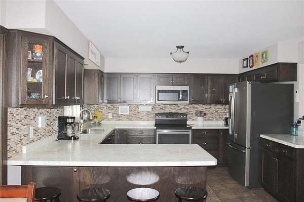 Inside, you'll find exceptional comfort and efficiency, with individual thermostats in every room and heated floors in both bathrooms. The cozy gas fireplace in the family room makes it the perfect spot to unwind year-round.