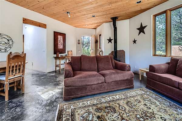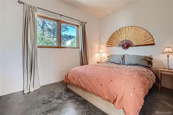 Step inside this bright 2BD/1BA retreat & feel the embrace of sacred geometrical design, quality SW-style construction, and views of mtns & nature from every room. Whether permanent, second or investment home, discover privacy, solitude & undisturbed nature in the Baca Grande, a true refuge from the hustle & bustle of modern life. Famous for awe-inspiring, 14,000-ft mountain peaks & pristine nature, the Baca features staffed firehouse, hydrants, EMTs, parks, trails, rustic golf/tennis & more. From the moment you enter the casita, you’re met w/ expansive views of the Sangre de Cristos, highlighted by Challenger Pt rising immediately to the east. Oversized tin-clad windows provide the sense of living within nature. Imagine daily life unfolding against this stunning backdrop! Set back from the road, down a long pvt drive, you are welcomed by a cozy flagstone courtyard w/ shade, blossoming trees & covered entrance. The great room is bathed in natural light, w/ handsome, polished concrete slab, featuring the luxurious comfort of hydronic in-floor heat. Surprisingly spacious, the open-concept great room has space for dining, living, a wood stove, dancing & more. The side door leads to the flagstone patio, for easy al fresco dining/entertaining. Well-organized kitchen w/ new stainless fridge, ample counterspace & custom wood cabinets. The hallway leads to full custom bath w/ view & two bright bedrooms. The primary bedroom faces the greenbelt, overlooking Willow Creek. Watch the wildlife come & go for a drink. When the windows are open, drift off to the gentle sounds of the gurgling creek. The laundry/utility room houses washer, dryer, LP boiler & water heater. Custom features include nicho, bullnose corners, flagstone hearth, high pine ceilings & more. Set on almost 2 acres of private, greenbelt-adjacent land, location is exceptional. Nearby Willow Park & Dream Way, leading to spiritual centers. <10 min to town of Crestone & amenities. Call today, this rare gem won't last.