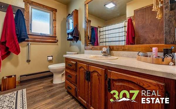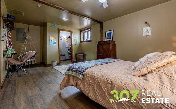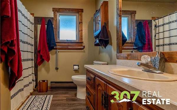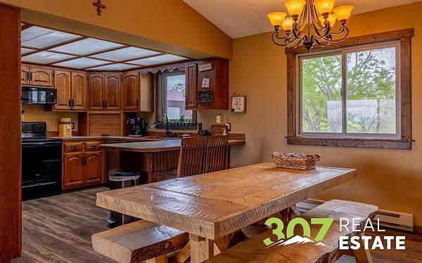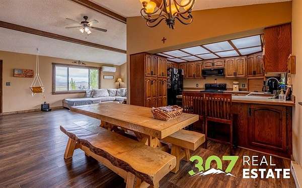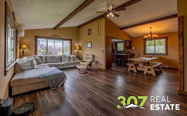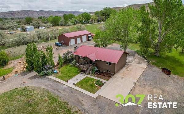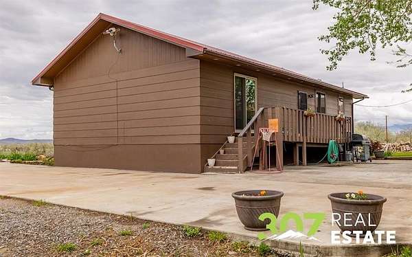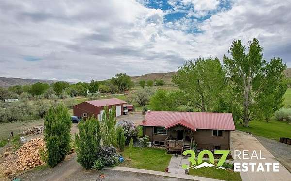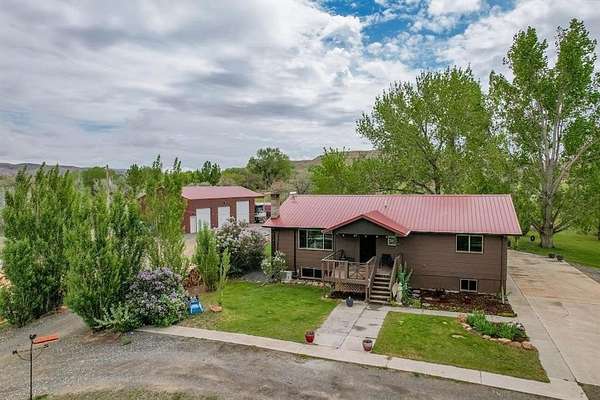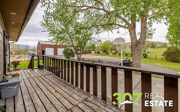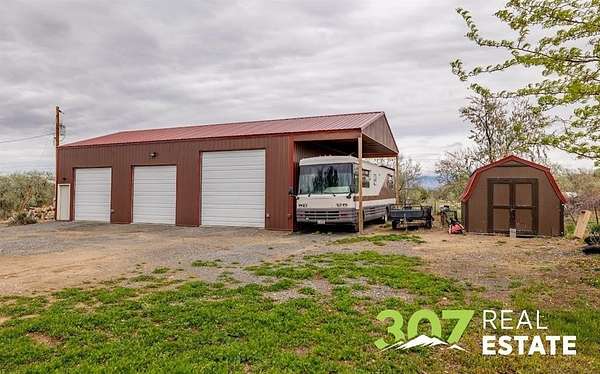 Nestled on a private 1.53-acre lot, this secluded property offers tranquility and stunning views. Mature trees surround the home, creating a peaceful and shaded environment. This property features a large shop which is equipped with a 50-amp outlet and an additional attached 10ft awning, providing a perfect place for an RV. The 1.53+- acres of irrigated land ensures a lush and vibrant outdoor space. Enjoy the scenery from the covered front porch or the back deck, great for relaxing and entertaining. Inside, the home offers a unique and practical feature: two separate laundry hookups. One is conveniently located upstairs, while the other is downstairs, providing the flexibility of single-level living. As the weather begins to cool, you'll appreciate the charming wood stove, which will creates a warm and inviting atmosphere throughout the winter. CALL TODAY for your PRIVATE SHOWING.