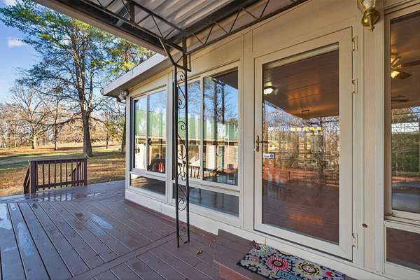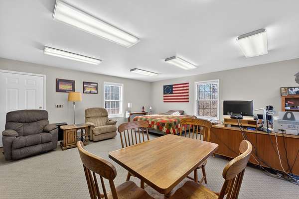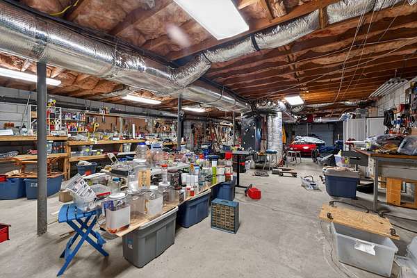 Space, storage, and serenity! Situated on 4 private acres, this 2,598 sq. ft. property is a unique find featuring ceramic floors throughout, a new deck, and fresh paint. This property includes a 450 sq. ft. detached flex building already equipped with heating and cooling for year-round use. While water is not run to this detached area, the structure offers endless potential for your specific needs--followed by an oversized 1,974 sq. ft. garage that provides incredible workspace or equipment storage with two separate storage rooms.