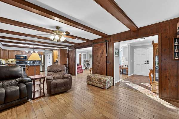 The home features a remodeled kitchen with new stainless appliances, new water heaters, and a bright, inviting sunroom perfect for relaxing and enjoying the scenic views. A must-see for those seeking the perfect combination of expansive outdoor living and unmatched workshop capability!