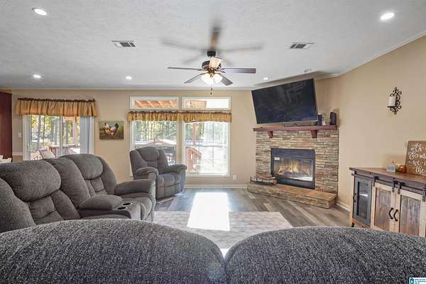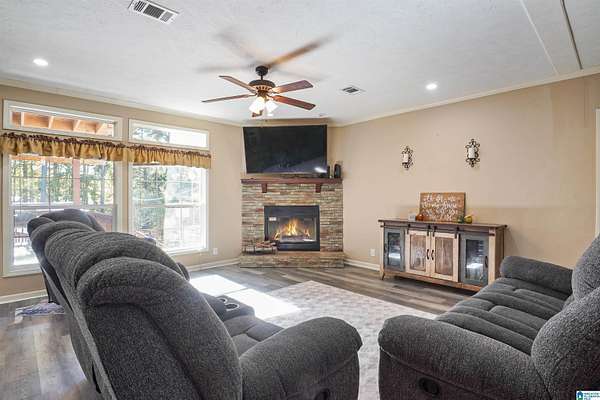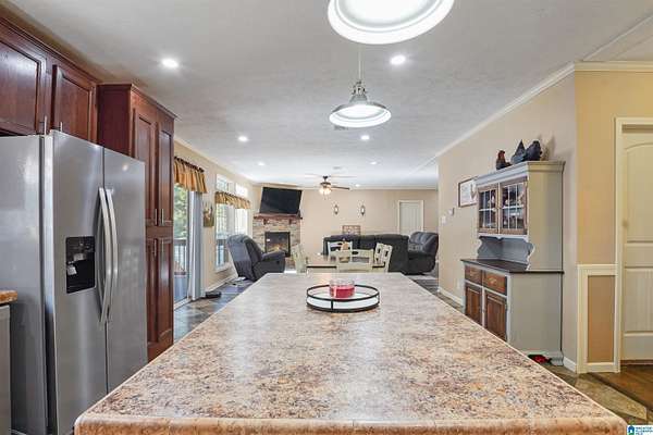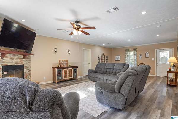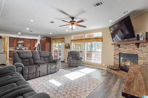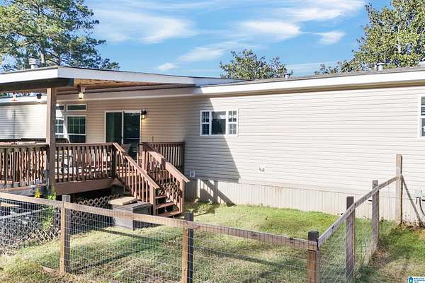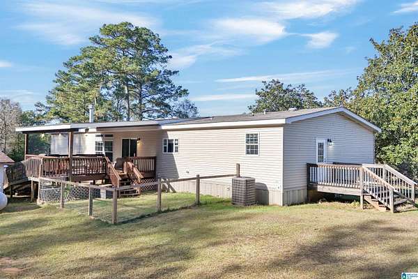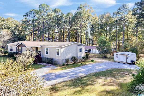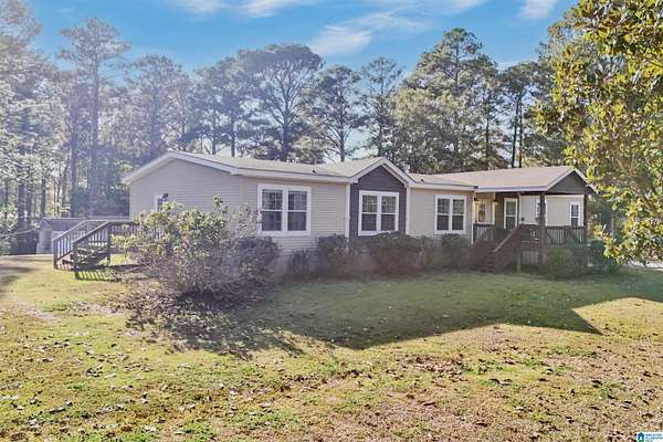 Looking for a large home with land...Look no further than this beautiful Mobile home with almost 2500 gq. ft, 4 BRs, 3 BAs and over 5 acres! And just minutes to downtown Sylacauga.This very spacious home has a large open concept living room/ formal dining. Large kitchen with island and breakfast area. Huge Pantry and large laundry room. New LVP flooring in the Living Room/Dining Room and Gas Logs in the fireplace. Large Master Bedroom and huge walk-in closet.The large Master Bath has large separate tile shower and garden tub. 2 Covered porches for entertaining. Whole house Generator. 2 Storage buildings, can be used for office, she shed or workshop. Area on the land for an additional Mobile Home with power and well water. Beautful mature Magnolia Trees in the front yard.