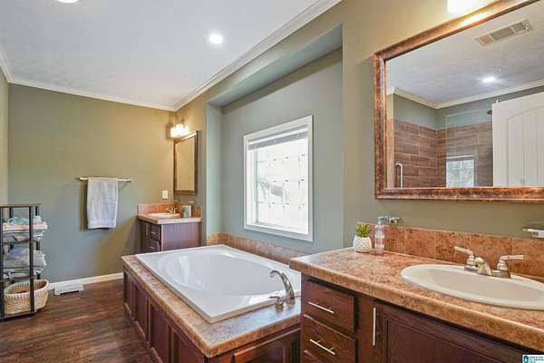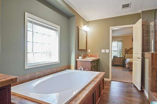 - Garden Tub, Separate Shower, Shared Bath, Split Bedroom, Split Bedrooms, Tub/Shower Combo, Walk-In Closets