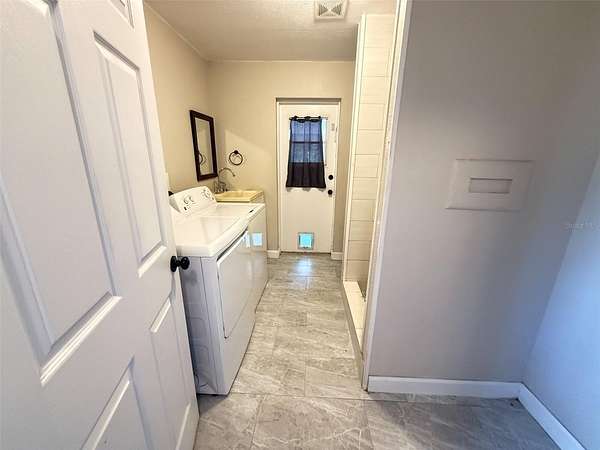 A LARGE SCREENED-IN PATIO provides the perfect spot to relax and enjoy views of the surrounding oaks and open pasture. There's also a convenient INDOOR LAUNDRY ROOM with washer and dryer included.