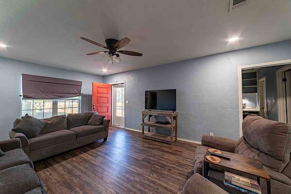 Charming Country Home on 5.22 Acres - Move-In Ready with Modern Updates! Enjoy peaceful country living just 5 miles west of Vernon, Texas! This beautifully remodeled brick home sits on 5.22 acres and is ready for its next owner. Featuring 3 bedrooms and 2 bathrooms, this property offers modern comfort with timeless country charm. Completely remodeled within the last 4 years, the home boasts new windows, plumbing, electrical, and a composition roof. Inside, you'll find new laminate flooring throughout with cozy carpet in the bedrooms, creating a warm and inviting atmosphere. The spacious open-concept kitchen, dining, and living area is perfect for family gatherings and entertaining. An extra-large laundry room/mud room and partially finished basement add convenience and versatility. Outside, enjoy plenty of room for hobbies, animals, or gardening with new fencing around the property, a newly fenced backyard, and a livestock barn ready for use. Additional features include a large 2-car garage, 3-car carport, extra storage room, 2 water wells for livestock and outside water, and beautiful shade trees that enhance the property's charm. Whether you're looking for a peaceful homestead or a hobby farm, this property has it all - space, comfort, and modern upgrades - all within minutes of town and right off US Highway 70.