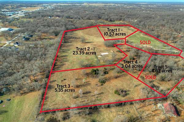 You have to see it to believe it! Enjoy the perfect blend of convenience and tranquility with this stunning property located just outside the Neosho city limits and only minutes from I-49. Scenic Views: Overlook acres of rolling hills with breathtaking views.Privacy & Nature: Surrounded by wooded areas for peace and seclusion.Flexible Options: Purchase Tract 2, 23.39 acres, or the entire four tracts of 42 acres.Note: Tract 2, the 23 acre lot, includes a newly added home foundation, well, and storm shelter. Tract 5 - Sold.Whether you're looking for a spacious homestead or a smaller tract to build your dream home, this property offers the charm of country living with easy access to town and major highways. Come see it today!