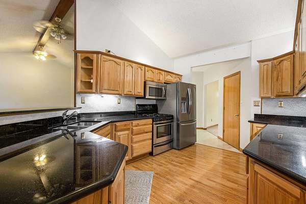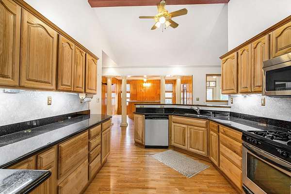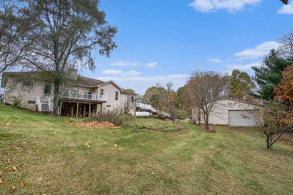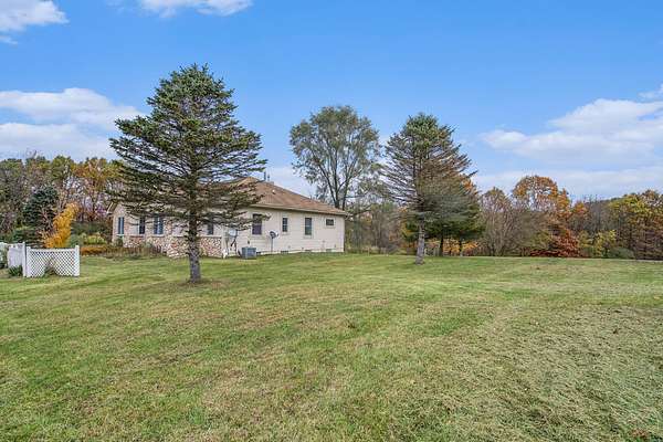 Welcome home to this large ranch home on three secluded acres that abutts hundreds of acres of state land. If you are looking for a private setting you have found it. Home is set back down a private drive and backs to woods. First floor is a large open floor plan that includes a living room with vaulted ceilings and fireplace, spacious kitchen with granite counters and stainless steel appliances, dining room, bar area, laundry room, primary ensuite, and three more bedrooms with two full bathrooms. One of the first floor bedrooms has an exterior door, so could be used for a home business. Large three season room off of the back of the house with a deck. Above ground pool with a deck for your summer enjoyment. Lower level walk out includes a mother in law suite with a non conforming bedroom, kitchen and full bath. Besides the in law suite there is tons of storage space as well as additional areas that could be finished, it is a blank slate. Large 40 X 40 pole barn with a tall ceiling and electric, would make a great workshop or hobby area. Easy to show, schedule your showing today!