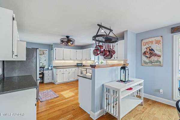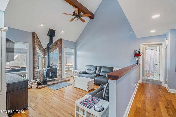 Experience premier lakefront living at this stunning Cove Norris estate. Boasting over 366 feet of deep-water lakefront frontage, this property offers unparalleled views of the open water and the Cumberland Mountains. Situated on a private 2.25-acre lot (plus an included 0.62-acre wooded lot across the street), this 4-bedroom(with one additional room for sleeping), 3-bath retreat comes fully turn-key. The main level features a sun-drenched, step-down living room with a cozy wood stove and floor-to-ceiling vistas. The chef-ready kitchen offers solid-surface counters, a walk-in pantry, and a dedicated workspace. Upstairs, the primary suite is a true sanctuary, featuring a spa-like bath with a pedestal tub and a high-end multi-jet walk-in shower. Ease of access is key: A private tram whisks you from the main level down to your Lifetime Dock. Located in a quiet cove for maximum privacy, the covered dock includes a tri-toon slip with lift, two covered jet ports, a water slide, and kayak racks. After a day on the water, retreat to the lower-level deck and soak in the hot tub. Complete with a 3-car garage and negotiable watercraft, this is the ultimate Norris Lake escape.