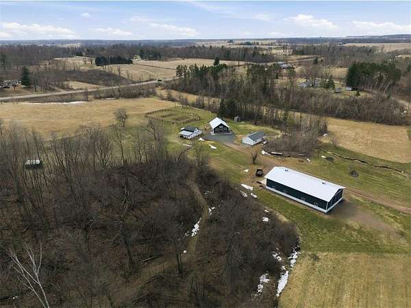 Escape to the perfect blend of rustic charm and high-end utility just west of Barron. This stunning 25-acre hobby farm offers a rare combination of productive land, recreational woods, and a top-tier outbuilding that is ready to work for you. Cozy Chalet Style residence welcomes you with soaring ceilings and natural light. 2 bedrooms and a versatile upper-level loft—perfect for a home office, hobby room, or additional sleeping quarters.Chalet Aesthetics: Enjoy the open feel and architectural interest that only a chalet design can provide. A Craftsman’s Dream, the crown jewel of this property is the incredible outbuilding setup: Main Shop: 40' x 80' pole shed (built in 2020) 15-foot sidewalls. Includes a 32' x 40' insulated, finished, and heated workshop—ideal for year-round projects, mechanical work, or a home business. An additional 22' x 40' detached garage provides plenty of extra space for daily drivers and storage. Older barn is 41 x 22. Hobby Farm & Recreation, whether you want to farm, hunt, or just explore, this 25-acre parcel delivers: Productive Acreage: Approximately 9 acres of tillable land, perfect for crops, hay, or pasture. Wooded Retreat: 5 acres wooded, featuring a private trail system for hiking, ATVs, or observing local wildlife. The remaining acreage provides a beautiful hobby farm setting with endless possibilities for gardening or livestock.