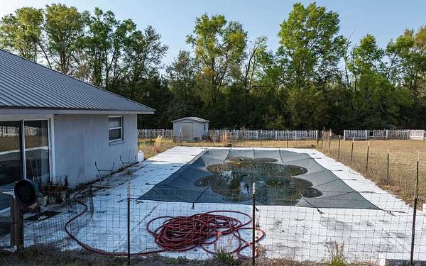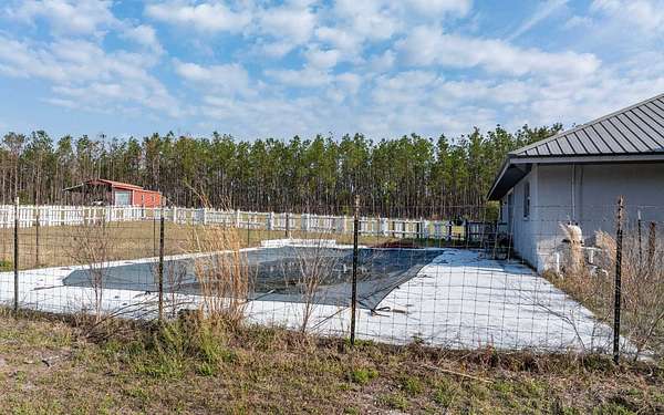 Est $2,436/moCome see the potential of this beautiful 3Br/2Ba stucco home on 10 acres. The house also has a converted garage into a huge bonus room that is equipped with a split unit A/C. Enjoy the inground pool that is currently covered and a metal workshop and lean to out back. The yard has been cleared and offers plenty of room for additional buildings or to be used for activities. The covered porch was recently damaged in a storm...quotes are being submitted to replace or to remove.