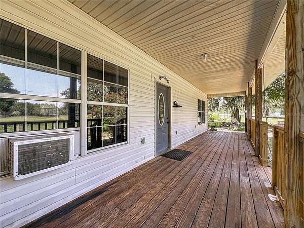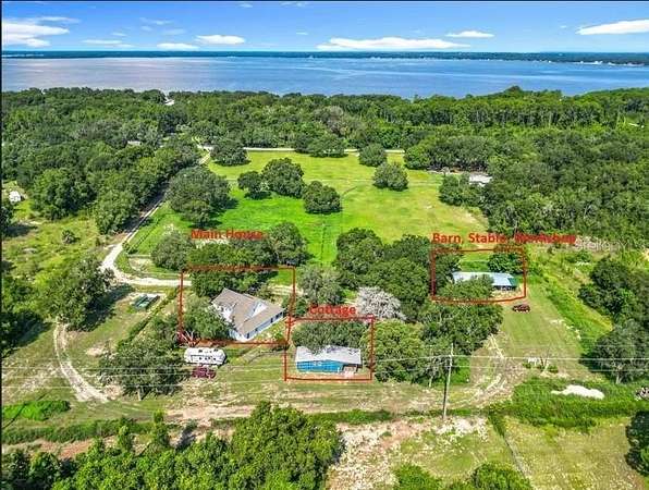 Step into the lifestyle you've been dreaming of with this picturesque 9.8-acre horse lover's haven, located just across the street from beautiful Big Lake Weir. This gated estate offers the perfect blend of country elegance, equestrian functionality, and incredible income potential--all in a serene, sought-after location near Belleview and The Villages. A long, private driveway leads you past sweeping green pastures to a charming farmhouse-style home with a new 2023 roof and over 2,000 square feet of welcoming living space. The cozy front porch sets the stage for peaceful evenings, perfect for watching sunsets with a glass of sweet tea in hand. Inside, the open floor plan features a spacious living area that flows effortlessly into a bright kitchen with generous cabinetry and a breakfast bar--ideal for entertaining or family gatherings. Two bedrooms and a full bath are located on the main floor, while a private upstairs suite offers its own full bath and a quiet escape. Just steps from the home, equestrians will find everything they need for their horses: A classic 4-stall red barn, A dedicated tack/feed shed, And two large, lush pastures, perfect for riding, grazing, or training. Whether you're a casual rider, competitive equestrian, or looking to offer boarding services, this property is designed to accommodate your passion with ease and comfort. And that's not all--this property comes with multiple income-generating opportunities that make it as smart an investment as it is a sanctuary: Four full RV hookup sites, each equipped with water, sewer, and electric, powered by a separate 400-amp service--ideal for hosting seasonal guests, traveling equestrians, or short-term renters attending local events. A charming tiny cottage, perfect as a guest house, rental unit, or even a private home office, complete with its own 150-amp electric service. The main house is powered by a 200-amp service, and the entire property is supported by three underground septic tanks, providing modern convenience and flexibility for expansion. In addition to its rural charm, the location is unbeatable. Just minutes from shopping, restaurants, and recreational activities, this peaceful escape keeps you connected while offering space to roam, ride, and relax. Whether you're searching for a private equestrian estate, a country retreat with built-in revenue, or a versatile property with room to grow, this Lake Weir gem checks every box. Schedule your private tour today and experience the unmatched lifestyle and opportunity this property has to offer.