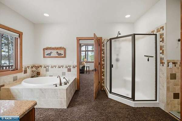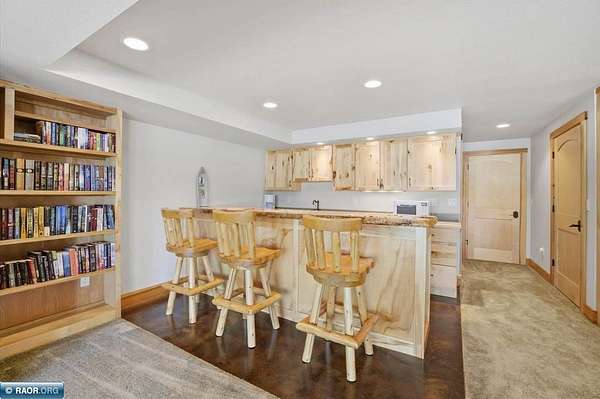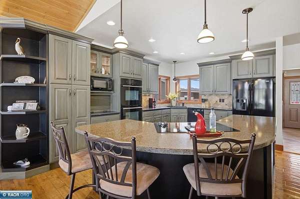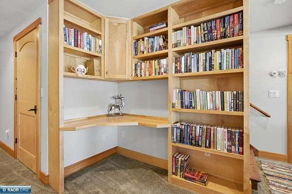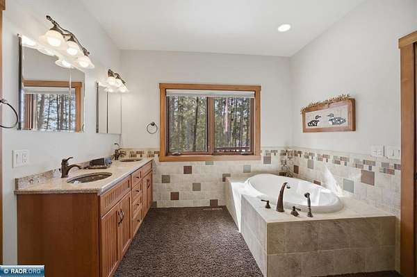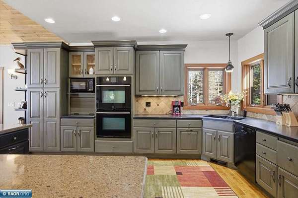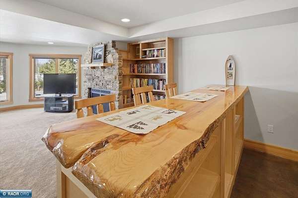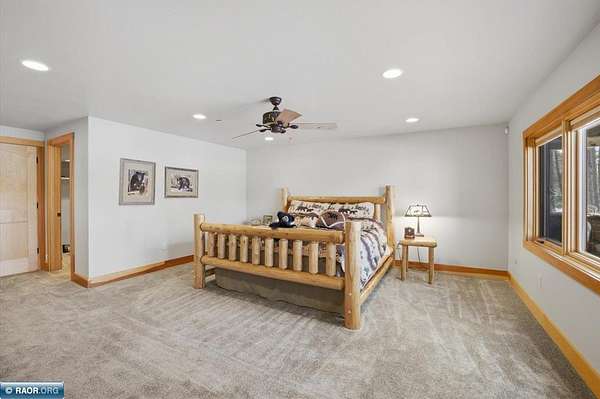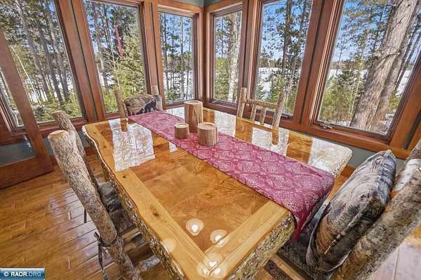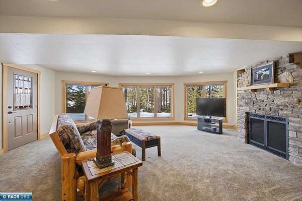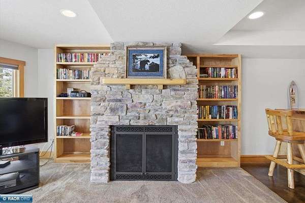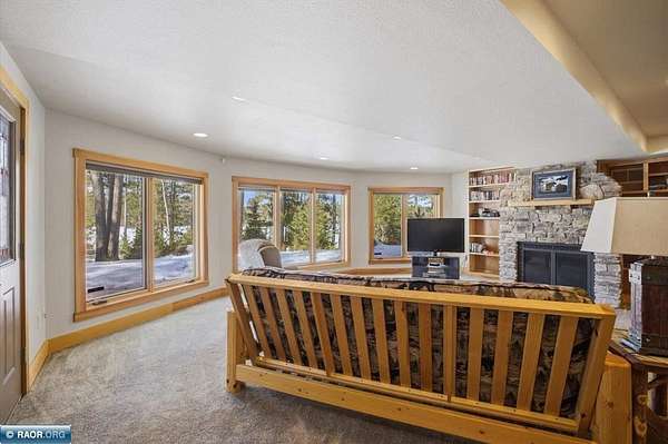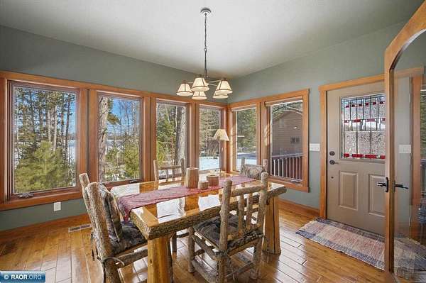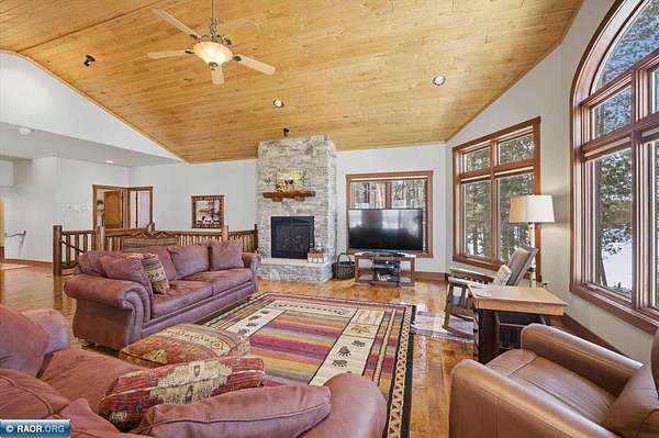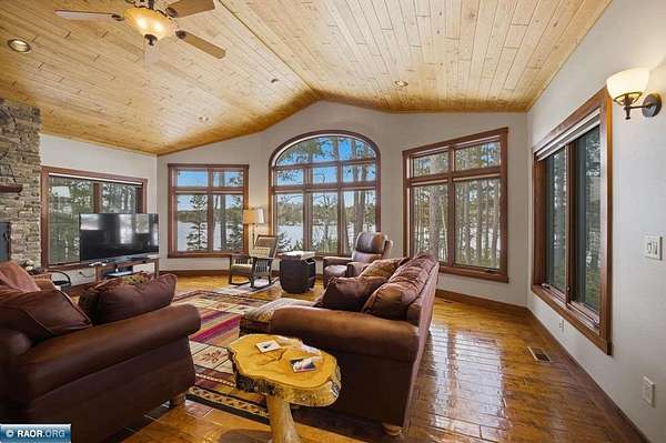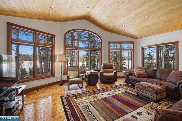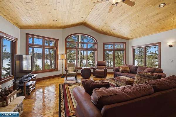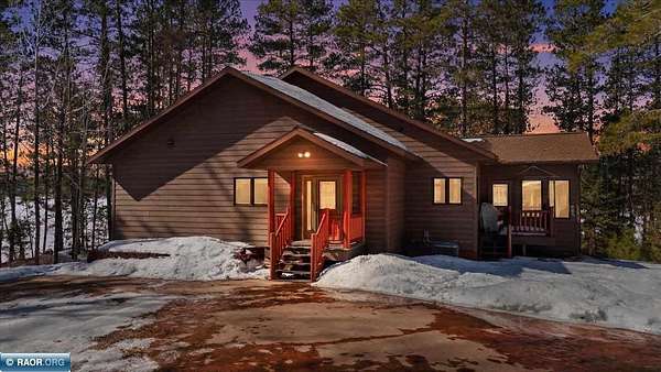 First time on the market! Experience Northwoods living in this stunning, turnkey furnished custom home on Garden Lake in Ely, Minnesota. Set on 2.5+ wooded acres with 800 feet of lakeshore, the property offers breathtaking views and a serene setting among towering red pines. Two permanent “Dock on Wheels” docks provide easy lake access. With 3,830+ sq ft, this 2-bedroom, 3-bath home features an open-concept main level with triple-pane Marvin windows, engineered wood flooring, and a cozy gas fireplace. The kitchen boasts a large island with cooktop, custom cabinetry, and quartz countertops. The primary suite includes a gas fireplace, lake views, spa-like bath, and private deck. The walkout lower level offers a spacious entertainment area with fireplace, custom bar, built-ins, second bedroom, and ¾ bath. Additional highlights include custom furnishings, a heated 3-car garage, and stamped concrete driveway. Move-in ready and truly exceptional.