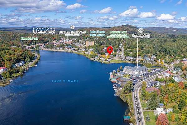 $254,000 PRICE DECREASE AND 2 ADDITIONAL PROPERTIES NOW INCLUDED TO TOTAL 5 ADJACENT PROPERTIES! Prime commercial oppt'y overlooking Lake Flower, located on a principal arterial serving north-south travel within Saranac Lake NY. This high-traffic, high-visibility corner lot comprises 5 parcels and approx. 383 ft of road frontage with excellent potential for redevelopment or possible repurpose/adaptive reuse of existing buildings. Ideal location for a mixed-use convenience store, retail space with apartments or office space above. Ex home of the iconic Lakeview Deli, this landmark destination has served patrons for generations and is ideally located across from the Lake Flower Boat Launch and Prescott Park, home of the annual Winter Carnival Ice Palace. Centrally located within walking distance to Main Street, Hotel Saranac, Riverside Park, Lake Flower Ave's newly built Saranac Waterfront Lodge with access to residential neighborhoods serving many points. Listing includes Tax Map #'s: 32.214-2-15.018, 32.214-2-14.017, 32.214-2-16.000, 32.214-2-5.019, 32.214-2-1.000. Business not included.