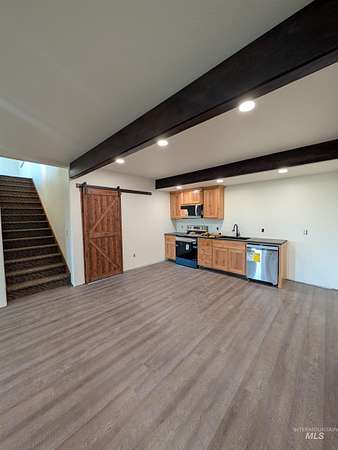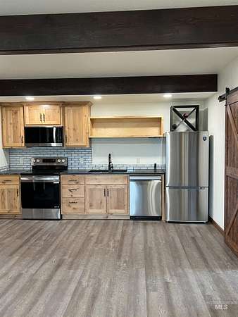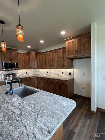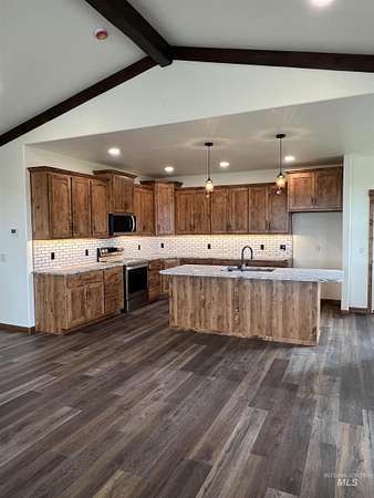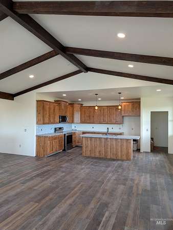 Luxury new construction on 5.71 acres just 7 minutes from Grangeville. This 3,352 sq ft, 5 bed, 3 bath home features vaulted ceilings with exposed beams, an oversized master suite with dual closets, a 5x6 custom-tiled walk-in shower, and 120 sq ft of premium tile. The kitchen offers granite counters, stone sinks, alder cabinets, and under-cabinet lighting. Mohawk LPV flooring, barn doors, Andersen windows, and a laundry room with sink add to the upscale finishes. Heating includes a gas/electric furnace upstairs and mini-split downstairs, with separate wiring for each level. LP SmartSide siding, covered deck and patios, RV pad with full hookups, and 50x58 shop pad provide both beauty and function with a 2 bedroom, 1 bathroom guest house. The property also includes interest in a shared 200 GPM artesian well and year-round creek.