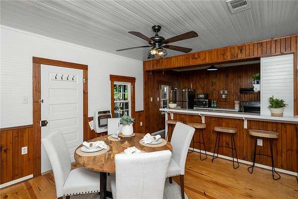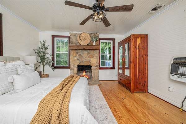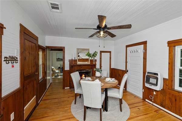 Appraisal on File Recent Updates include; Trex decking on side porch & walkway, new flooring in kitchen, additional cabinet and updated hardware in kitchen, new exterior + some interior doors, new paint in laundry room. Historic Winchester Farmhouse on 5+ Acres with Private Pond & Guest Cabin Nestled on 5.14 serene acres in the heart of Sunset, South Carolina, this beautifully preserved and thoughtfully updated 1890s farmhouse offers a rare opportunity to own a piece of history. Originally the Winchester Farmhouse, this 3-bedroom, 2-bathroom home blends timeless character with modern comfort-and includes a charming separate guest cabin for added space and flexibility. Step inside to find 1,444 sq ft of warm, inviting interiors showcasing original beadboard walls and ceilings, rich pine hardwood floors, and four cozy fireplaces. The farmhouse/cabin aesthetic is complemented by extensive renovations, including Hardie board siding, a standing seam metal roof (2013), updated insulation, new windows, and a whole-house standby generator for peace of mind. Enjoy your morning coffee on the screened front porch or unwind on the side and back porches as you take in views of the spring-fed pond and the tranquil Little Eastatoe River, which borders the property. The main home offers central cooling on the first floor, gas heat, and new window units for upstairs comfort. The separate guest cabin features one bedroom, a full bath, a sitting area, and a kitchenette-perfect for hosting visitors, a rental opportunity, or multi-generational living. Additional features include: A brand-new 30x30 workshop, Original 1800s smokehouse, RV/boat carport, Additional workshop/garage space, New well and well pump, Electric water heater Whether you're dreaming of a peaceful retreat, a mini homestead, or a unique investment, this one-of-a-kind property offers endless possibilities surrounded by natural beauty and rich history.