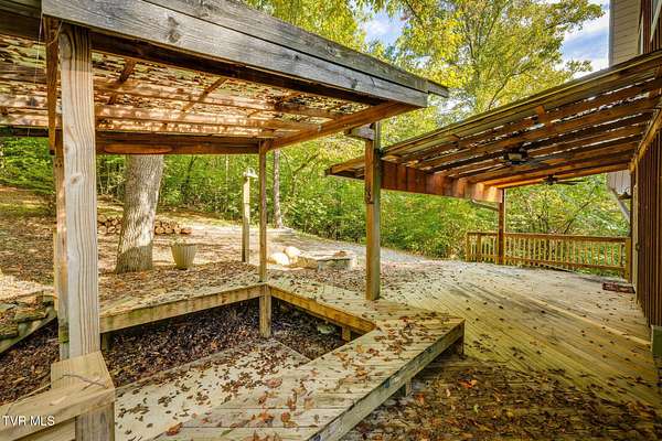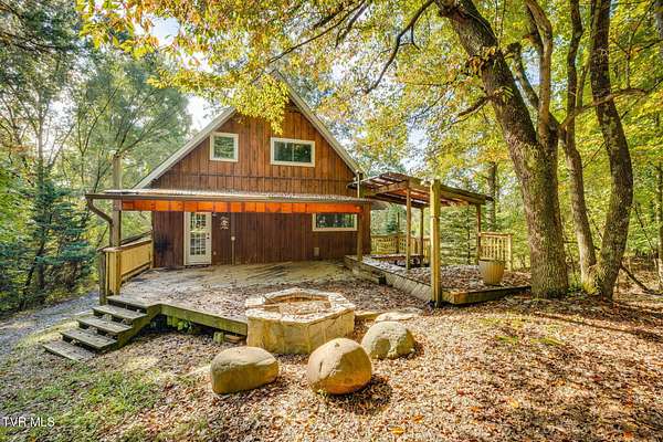 Nestled on 1.78 completely secluded acres at the end of a quiet road, this stunning hillside chalet at 137 Forester Lane in historic Jonesborough, TN offers the perfect blend of rustic charm and modern updates. Featuring over 1,500 sq ft of living space, this 3-bedroom, 2-bath home includes a beautifully updated kitchen, brand new windows throughout, and both a cozy wood-burning fireplace and a gas fireplace for year-round comfort. Step outside to enjoy over 1,000 sq ft of wraparound decks and porches, surrounded by nothing but nature-you'll listen to birdsong and rustling leaves, not traffic or neighbors. The custom-built outdoor fire pit is not only perfect for gathering under the stars, it's large enough to double as a rotisserie (and has done so deliciously!). The property is also rich with seasonal bounty, including blackberries, raspberries, figs, and blueberries growing right in your own backyard. Just minutes from downtown Jonesborough and 10 minutes to Johnson City-recently named the South's #1 place to move-this retreat is also only 30 minutes from Tri-Cities Airport for easy travel, 1 hour from the Bristol Casino, and 1.5 hours from the Smoky Mountains and Dollywood-close to next-level entertainment. Whether you're searching for a permanent home or a private mountain escape, this property offers a lifestyle that's as flavorful as it is peaceful.